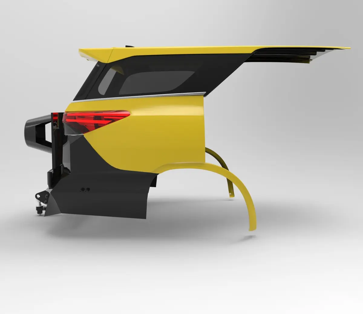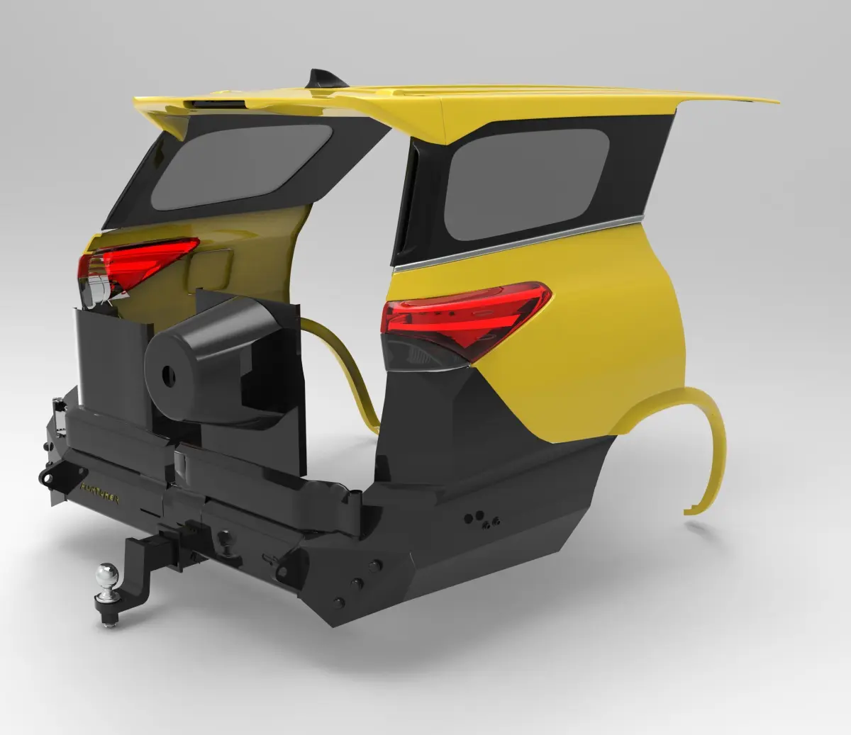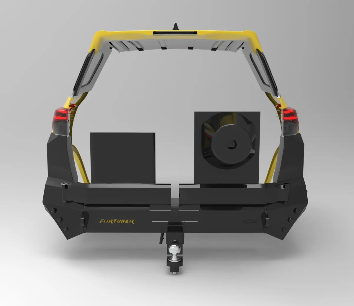 High-quality 3D model of the Ecotechne rear bumper for Toyota Fortuner, designed for enhanced protection, off-road performance, and utility. This bumper features a rugged steel structure, precise fitment to the Fortuner body, and integrated mounts for tow hooks and accessories. Ideal for expedition builds, overlanding, and utility setups. Optimized for high-quality renders, animations, VR/AR applications, and automotive visualizations.