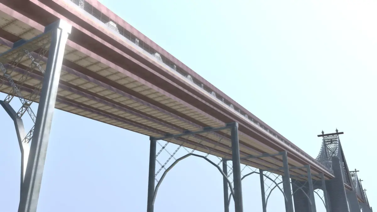 The Queensboro Bridge is a cantilever bridge over the East River in New York City. The bridge is also named the 59th Street Bridge because its end in Manhattan is between 59th and 60th streets. It was finished in 1909. The Queensboro Bridge connects Midtown Manhattan with Long Island City in the borough of Queens. It goes over Roosevelt Island. The bridge is 7,449 feet (2,270 m) long. The bridge was renamed after New York City mayor Ed Koch in 2011. Its official name is now the Ed Koch Queensboro Bridge.