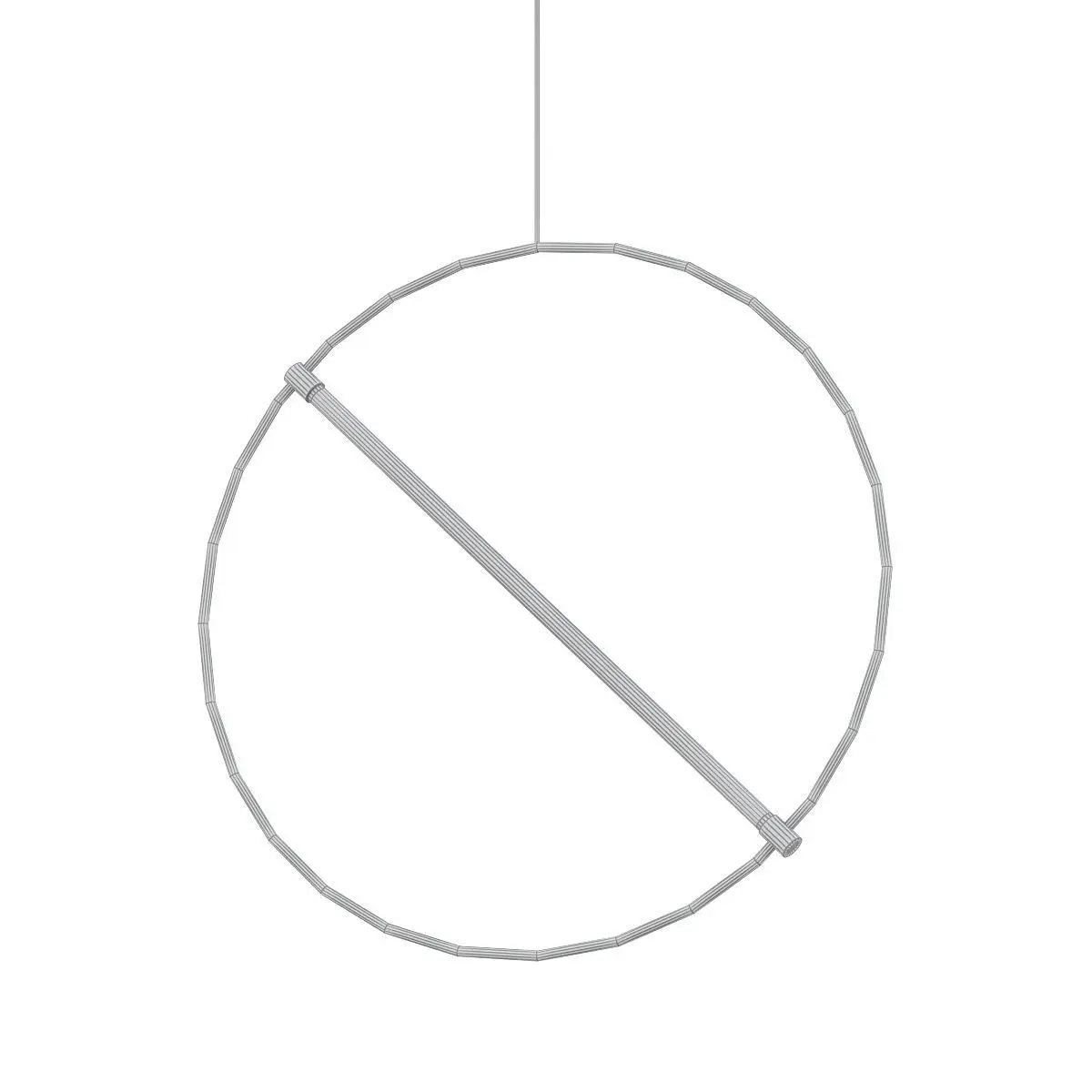 ed046Suspension lamp made by a brass or chromed circular tube diagonally crossed by a frosted LED tube