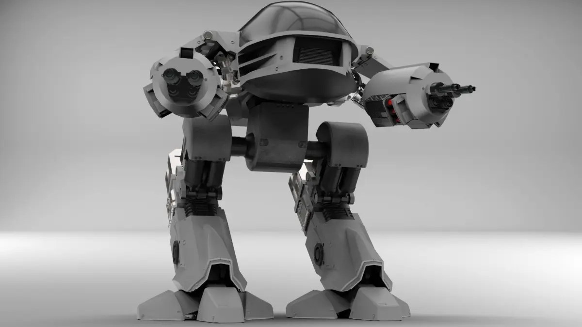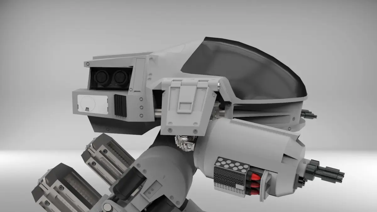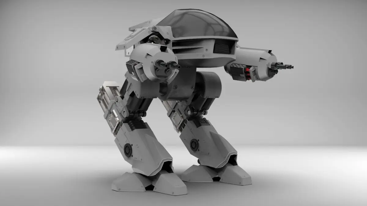 YOU HAVE THIRTY SECONDS TO COMPLY. This is a model of ED209 from the Paul Verhoeven classic, Robocop. The good version not that new one... This model was made in 3ds Max using a collection of standardised parts and using research from the original build of the physical model including references for car parts and for rear driven assemblies - ED209 is not a chicken walker robot even though it may look like one, instead it has a sliding reverse leg for lift and placement that makes is fairly unique.The model is not textured - instead, the model is pre-coloured on the mesh so that it can be allocated textures in any procedural renderer, the examples I am using are rendered in Keyshot which took approximately 10 minutes to do from importing the model.If you would like I will separately send you the entire video on how this piece is made at no extra cost if you purchase this model. The video set with full audio is 40 hours and includes creation of a low polygon model which is unwrapped and normal mapped using the high polygon model. I also show how to create a full rig for it, how it can be animated and how to put the ED209 model into the Unreal Engine (it was actually the older UDK however it still works rather unsuprisingly on the UE4 engine. )I will be updating this product with more files including low poly and the rigged max files and so anyone who purchases this will get those too at no extra cost.