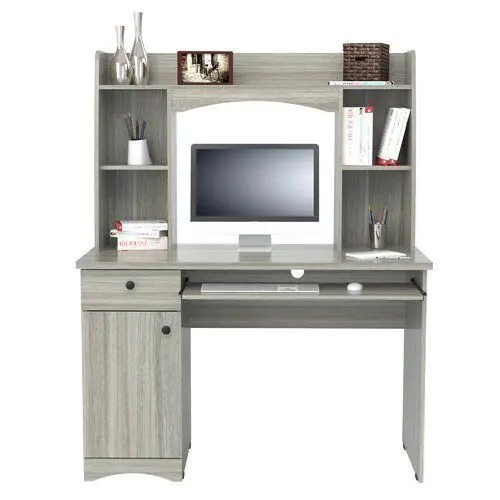This desk is constructed from manufactured wood and finished in smoke oak double laminated durable melamine which is stain, heat, and scratch resistant. This is just the right desk to accommodate both your work tools with plenty of storage space. The desk features a top left drawer for your office supplies and a bottom concealed door for storage of your CPU or other office essentials. A cable management pass-through feature keeps all cords organized. Both the laminates and design make it ideal for staging and decorating your home office or office.What's Included?HutchProduct DetailsTop Material: Manufactured WoodBase Material: Manufactured WoodAdult Assembly Required: YesDrawers IncludedDrawer Glide Mechanism: Roller GlidesNumber of Drawers: 1Sustainability DetailsSustainably SourcedNo Include shelf
