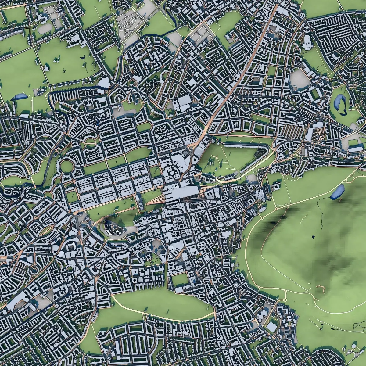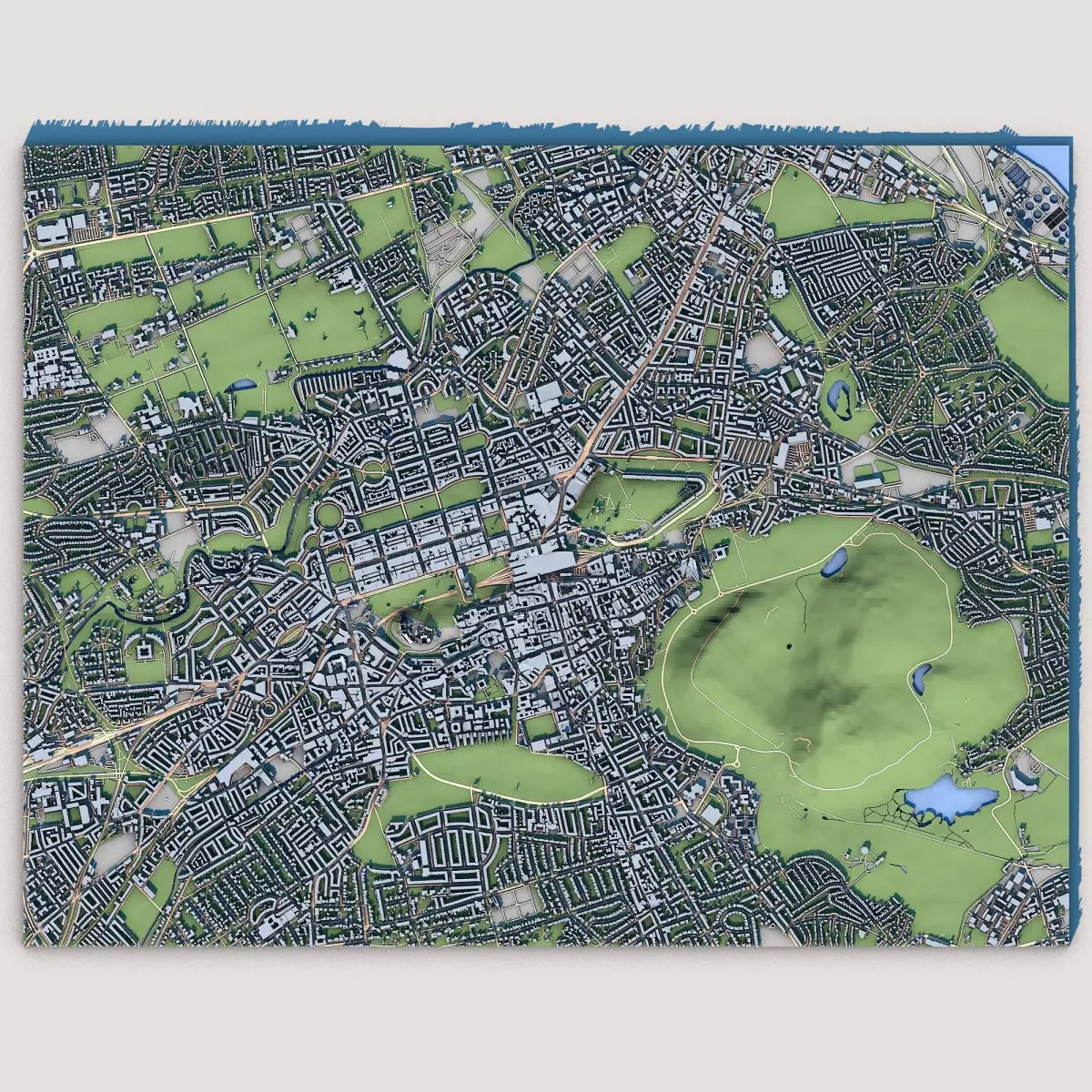 High-quality Edinburgh city map 3D model, Scotland.The STL .ZIP archive includes multiple separate STL files: buildings, roads, terrain, water, vegetation etc.