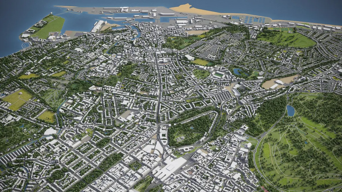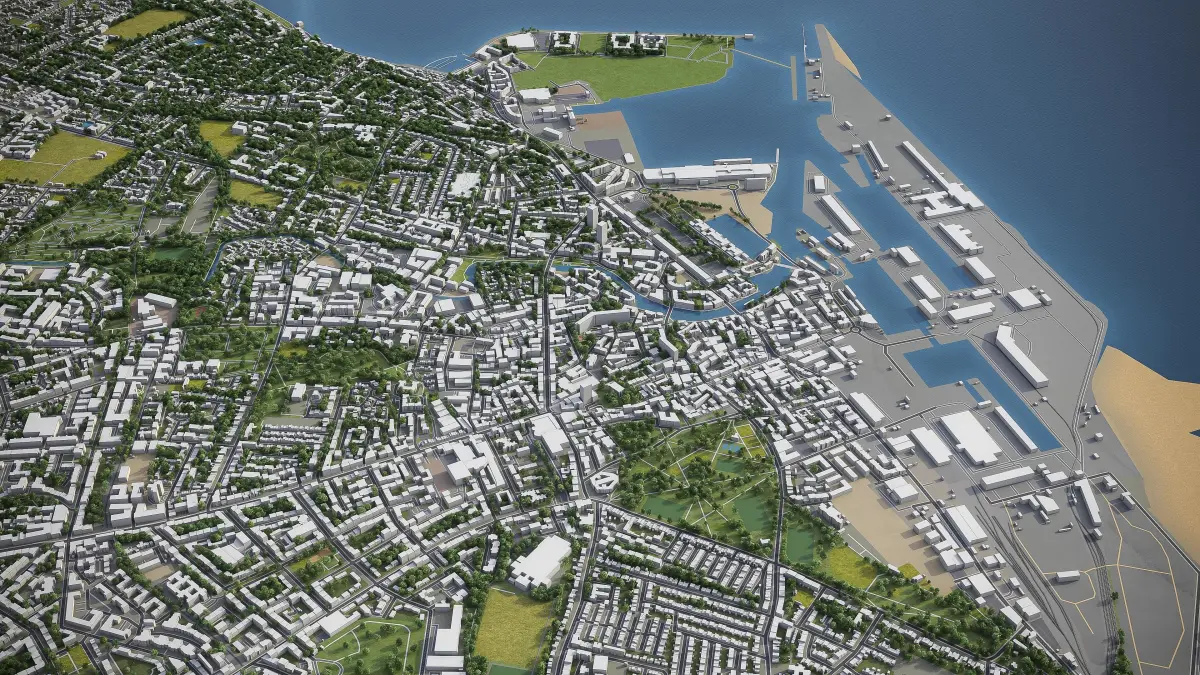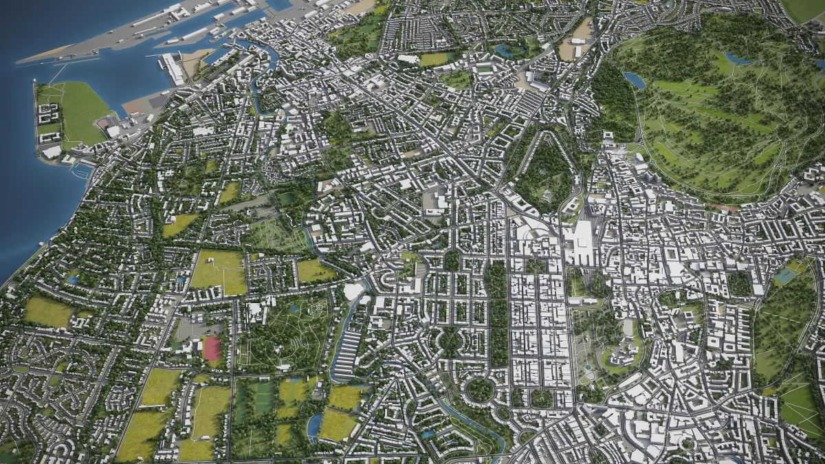 - Full city extents up to 100 x 100 km — or crop to an area of interest for better format compability and scene performance