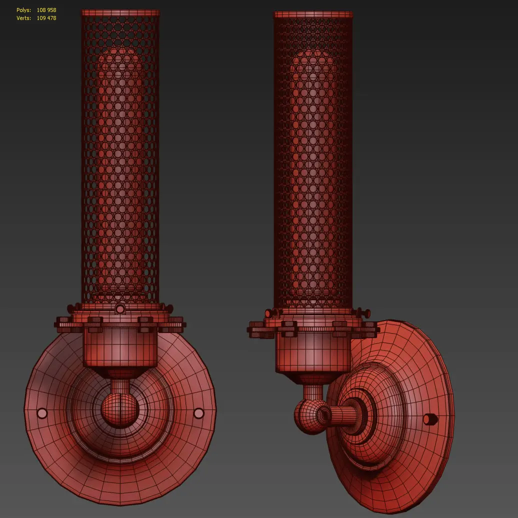 EDISON PERFORATED METAL SCONCEArchives included: textures, materials (vray), FBX, OBJ, 2011 max, 2014 max sceneModel was created in 3ds Max 2014.Shader for V-Ray 3.20.02Dimensions sconce:• 5W x 4D x 12,75"H• 12.7cmW x 10.6cmD x 32,4cmH