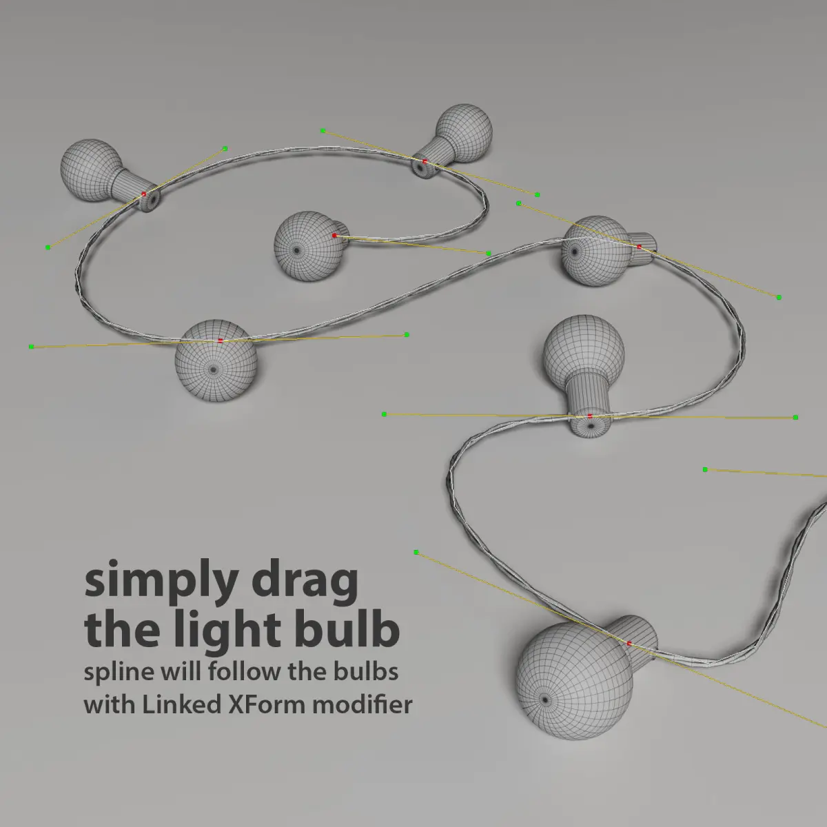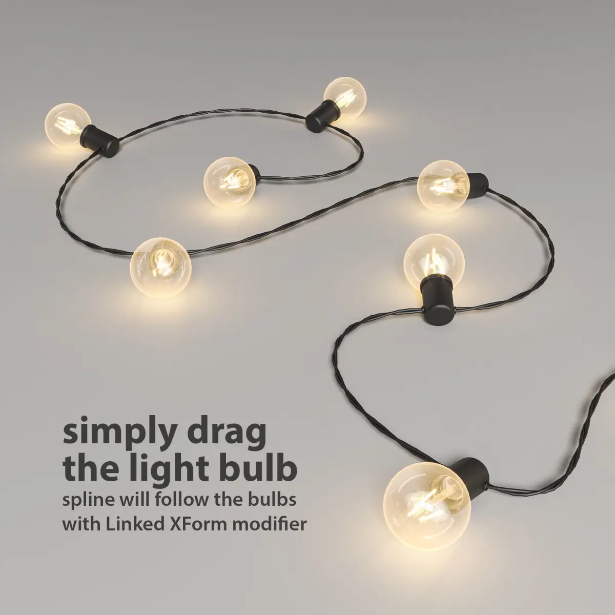 Unfortunately only original .MAX file supports Path Deform Binding modifier! Other formats (for example FBX, OBJ, DXF) will collapse modifier stack, so only 3d model shown in the preview will be available. It means that you can change the garland shape only using .MAX file.