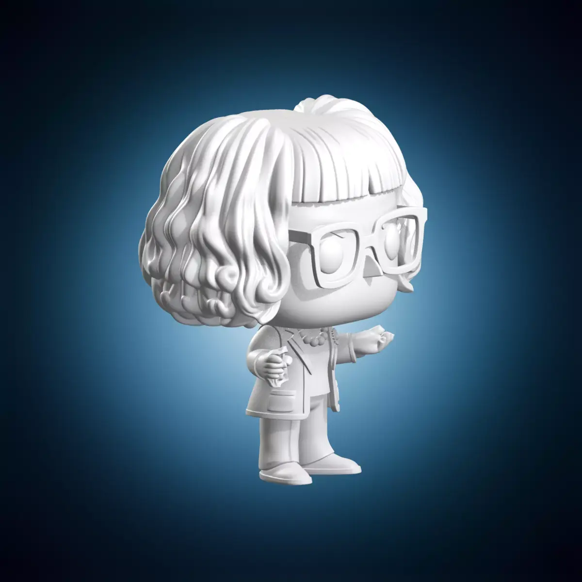 A highly detailed and realistic 3D model of Edna Mode from The Incredibles in a funko pop style figure. This model is designed to be highly accurate and visually stunning, making it perfect for use in film, television, or animation productions. The model is suitable for various applications, including game development, architectural visualization, and product design. It features intricate details such as facial expressions, clothing, and accessories, all rendered in a stylized funko pop style. The model is available in multiple formats, including OBJ and STL.