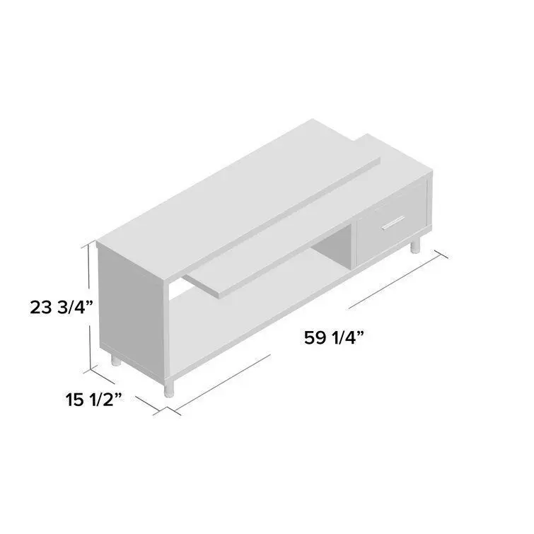- Break away from the traditional and veer towards the contemporary with this eye-catching TV stand. Crafted from engineered wood with melamine veneers, it showcases a clean-lined look with a maze-like silhouette, giving you plenty of shelf space to display trinkets or digital devices. It also includes a single drawer, giving you a spot to tuck away items that you want out of sight. Measuring 59'' W, it accommodates flat-screens up to 24''.