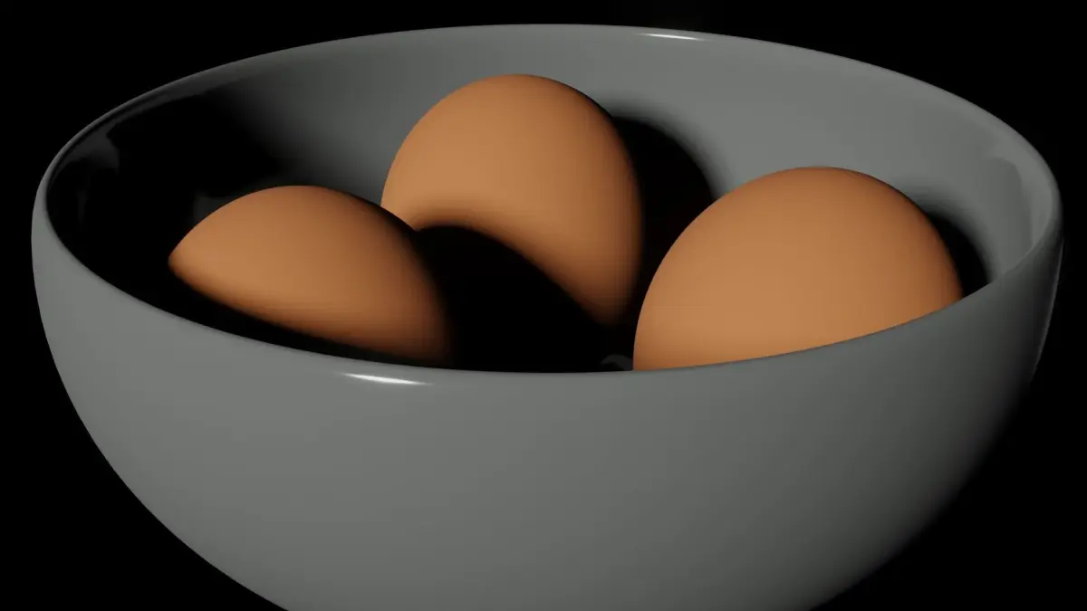 The file contains 4 3d models (3 eggs and a ceramic container) Low Poly
