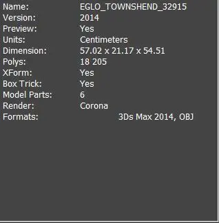 Detailed 3d model of Eglo Townshend. Detailed enough for close-up renders.