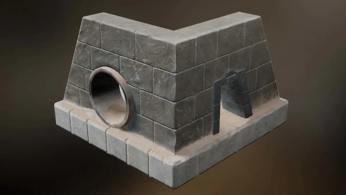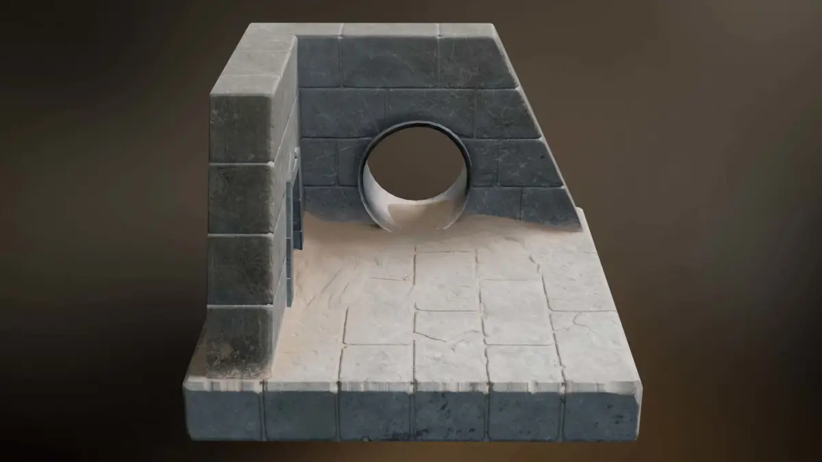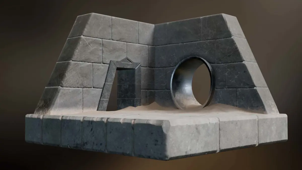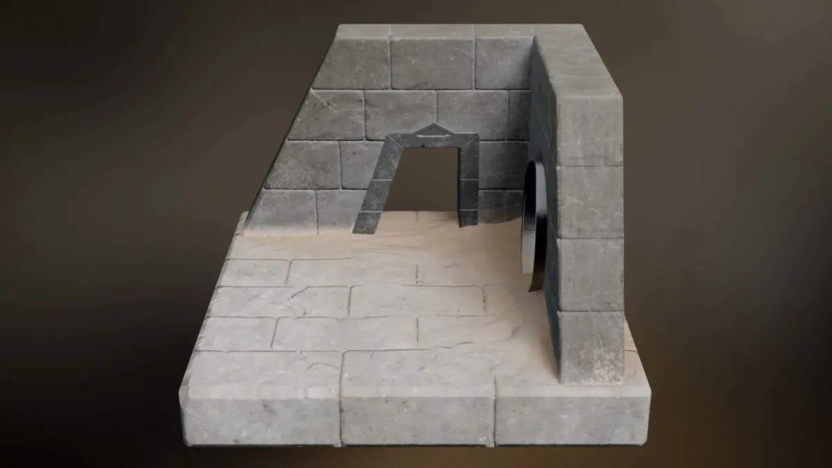 Miniature in the style of an Egyptian tomb.Two entrances in the form of a pipe and an opening.