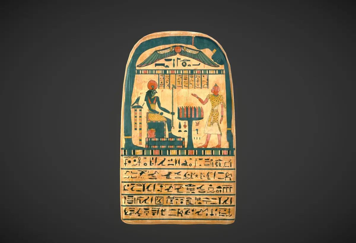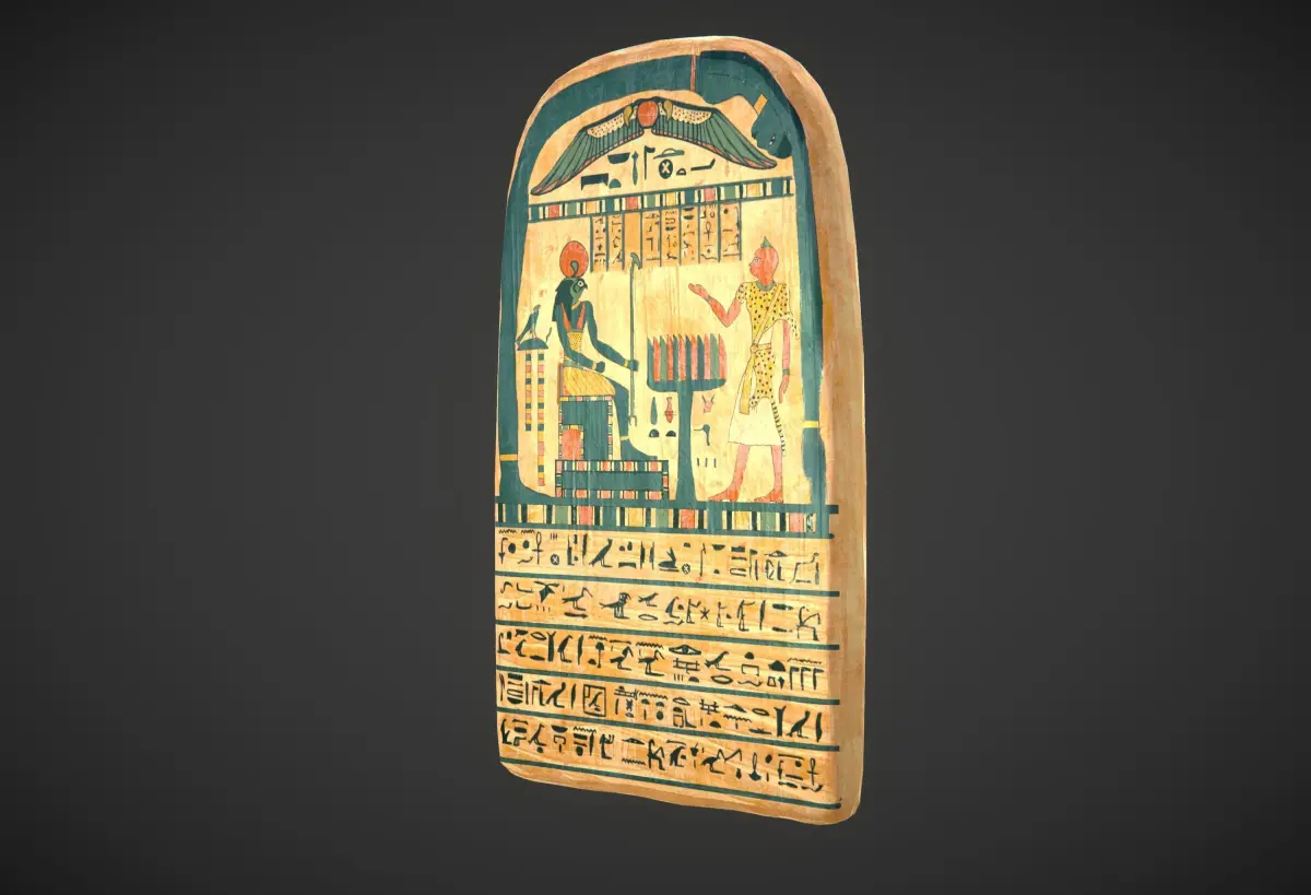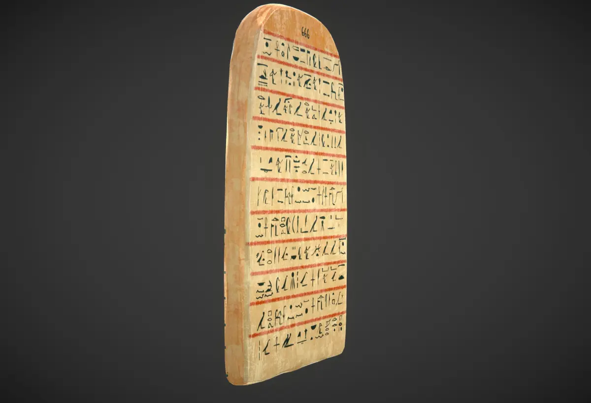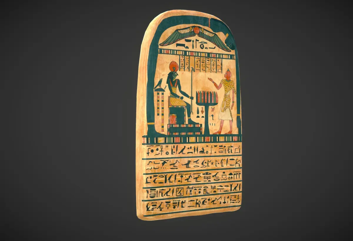 Model based on real stele: The Stele of Ankh-ef-en-Khonsu (also known as the Stele of Revealing)
