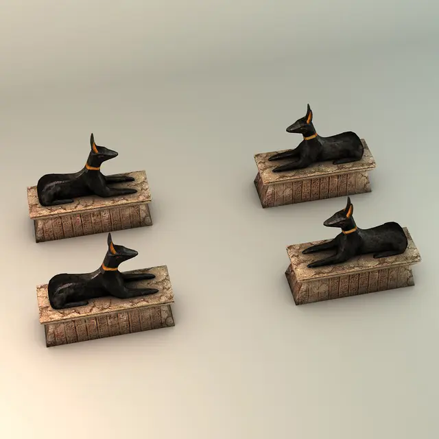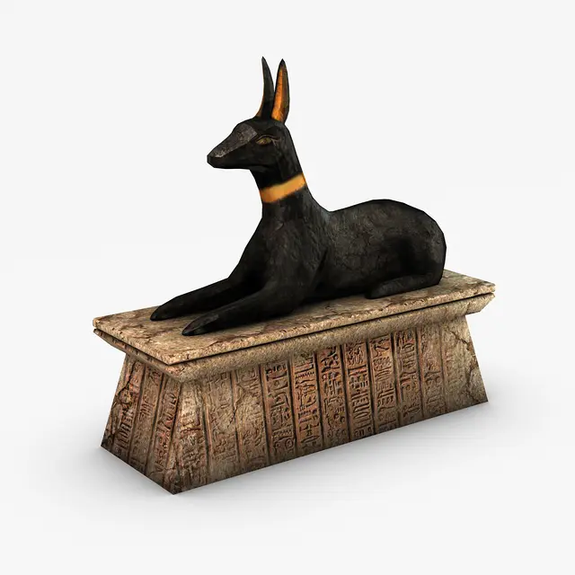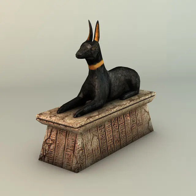 3d model of an egyptian anubis statue. Perfect for games or decoration renders. This model is low poly but it has detailed textures. Hand painted.