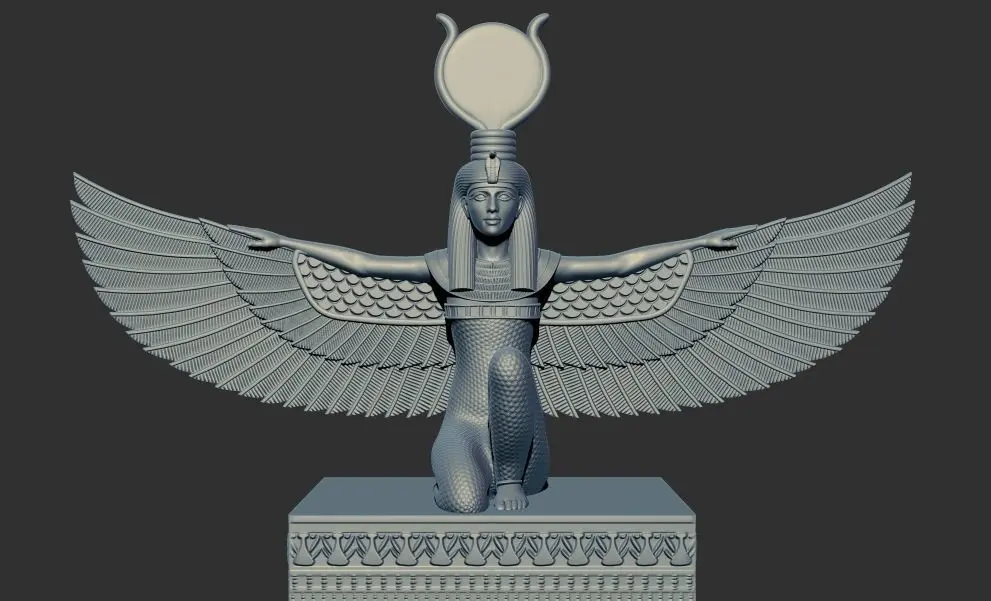 This design is inspired by authentic depictions of Isis found in temples and tombs across Egypt, especially her statues at Philae and other sacred sites. Unlike many generic egyptian statue 3d models, this one focuses on her seated pose with extended wings, one of the most powerful and recognizable symbols of protection in Egyptian art.