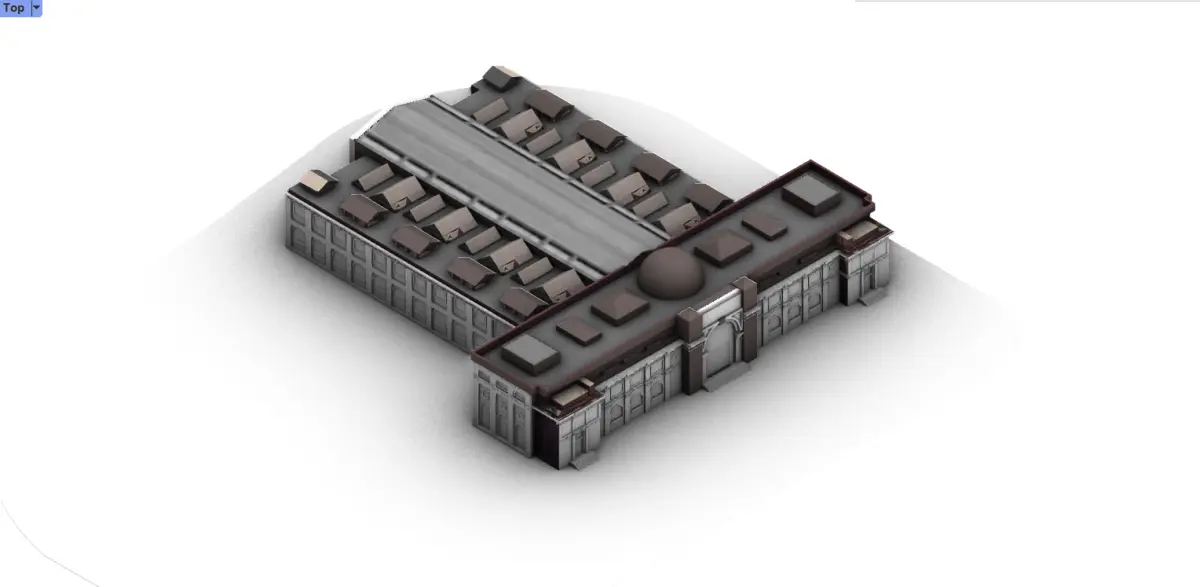 This is a detailed 3D model of the iconic Egyptian Museum, modeled in Rhino. The model accurately replicates the museum's intricate architectural features, including its grand arches, detailed facades, and iconic dome. It is ideal for architectural visualizations, historical projects, or educational purposes. The model is created with clean geometry, ensuring compatibility for rendering and further customization. Whether for showcasing Cairo's architectural heritage or integrating into urban environments, this high-quality model offers precision and versatility.