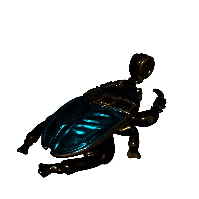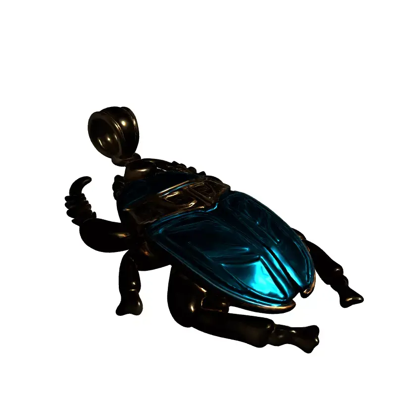 Presenting a highly detailed 3D model of an exquisite Egyptian scarab beetle pendant. This meticulously crafted piece features a luxurious golden metallic body contrasted with vibrant, iridescent blue elytra, adorned with intricate hieroglyphic-inspired patterns on its head and thorax. A polished bail is integrated for realistic suspension, capturing the essence of ancient Egyptian artistry and symbolism. This model is ideal for a diverse range of applications, including game development as a valuable collectible or quest item, architectural visualization for adding cultural flair, virtual reality (VR) and augmented reality (AR) experiences, digital art and animation projects, or high-quality product visualization for jewelry design. It can serve as a striking decorative element in opulent scenes, historical dioramas, or as a standalone centerpiece. The model is available in common formats such as GLB, OBJ, FBX, USD, DAE, and STL, ensuring broad compatibility with most 3D software and engines. Optimized for high-fidelity rendering, it showcases stunning visual appeal in static renders and pre-rendered animations, and with proper optimization (e.g., LODs), it can also be adapted for real-time applications where visual quality is paramount. It boasts clean, subdividable topology for smooth surfaces at any resolution, is fully UV unwrapped for efficient texturing, and includes PBR (Physically Based Rendering) textures to deliver realistic material properties under various lighting conditions. This model is ready for immediate integration into your projects.