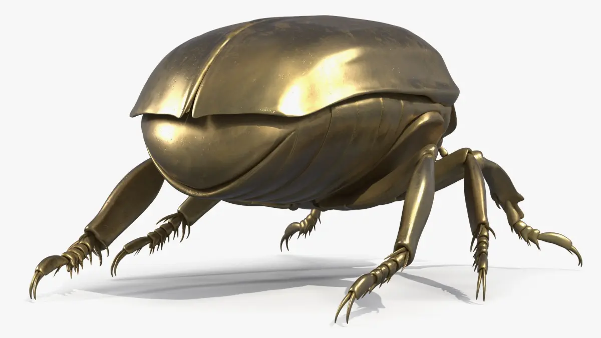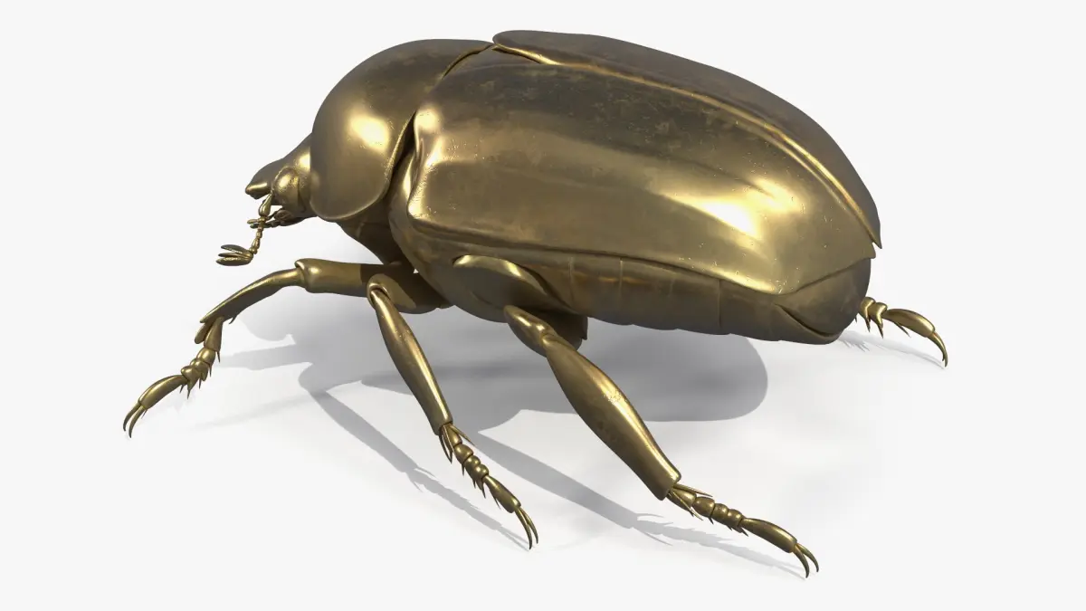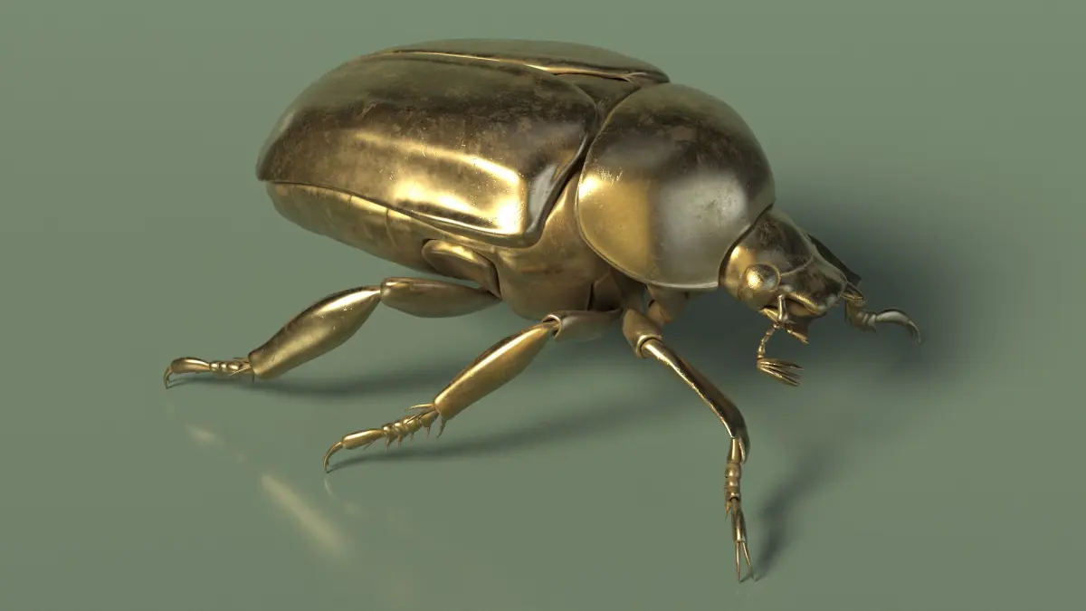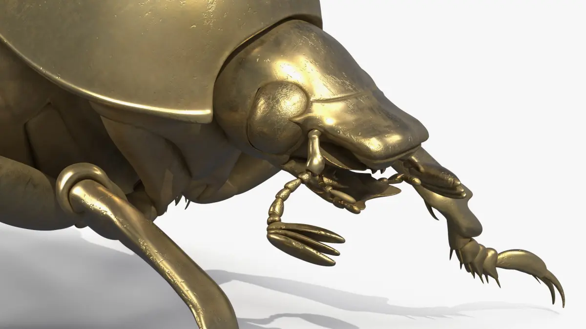 Egyptian Scarab Figurine Gold is a three-dimensional model of sacred scarab beetle revered in ancient Egyptian culture as a symbol of rebirth and divine protection.