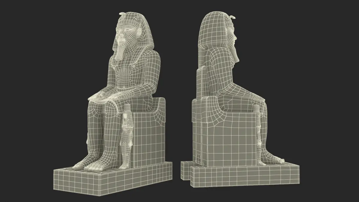 For archaeology visualization, museum exhibition simulations, cultural heritage projects, VR and AR educational platforms, cinematic productions, game development, historical research, academic presentations, and promotional content requiring authentic Egyptian-inspired statuary.