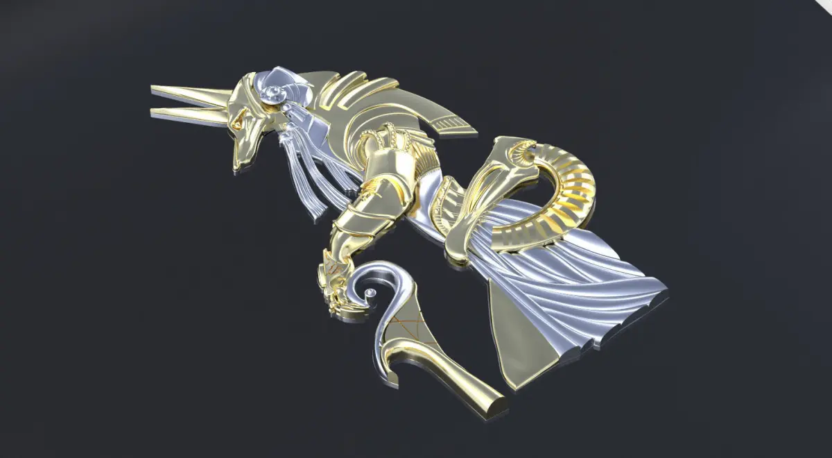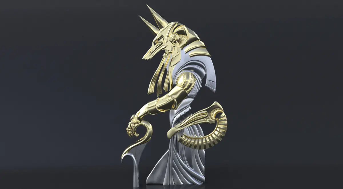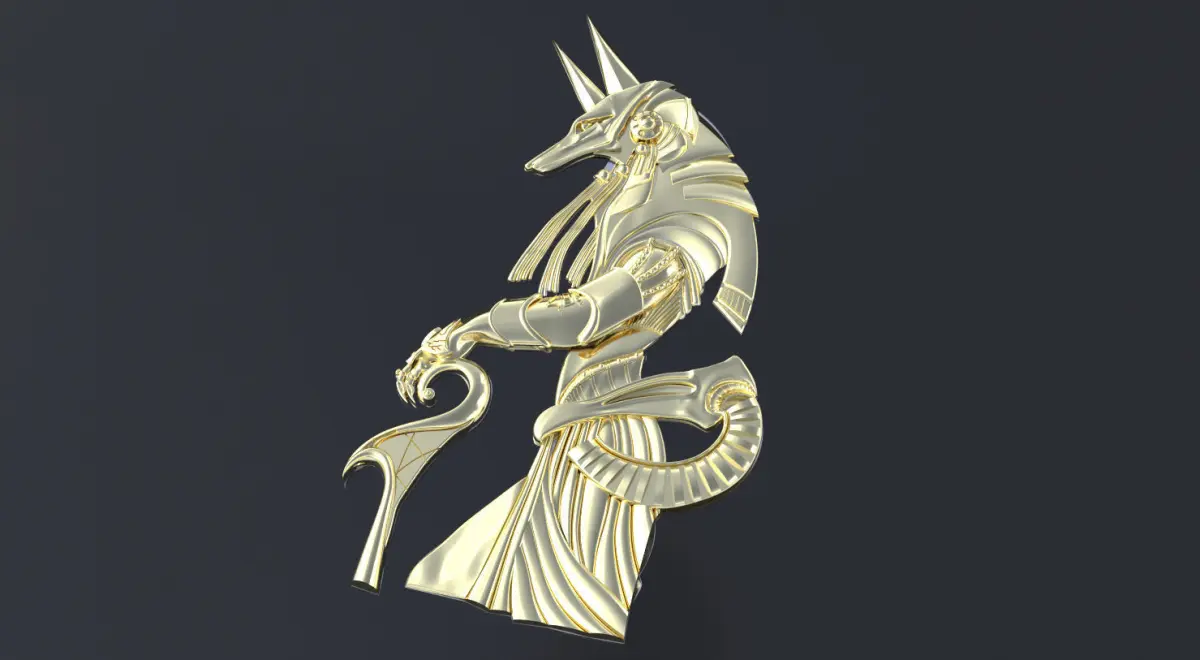 Element for decor Anubisbe used as a stand-alone detail or overlay as well as an element for decoration.Anubis, in Egyptian mythology, the god and patron of the dead, the son of the plant god Osiris and Nephthys. A symbol of justice and legality.