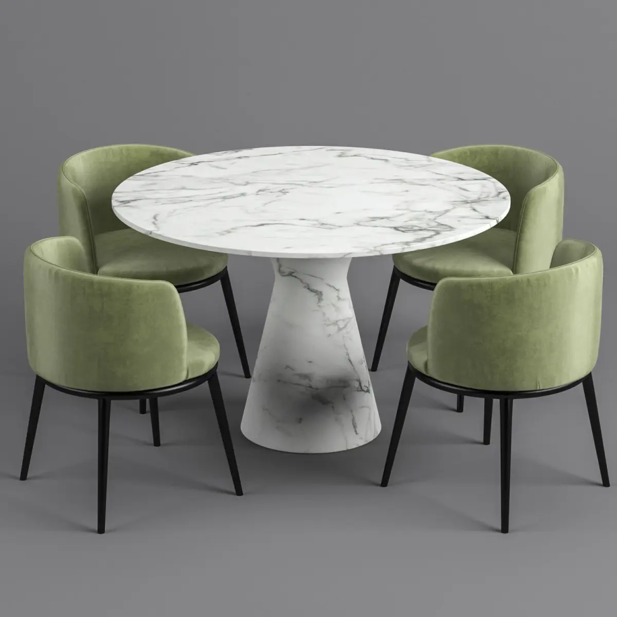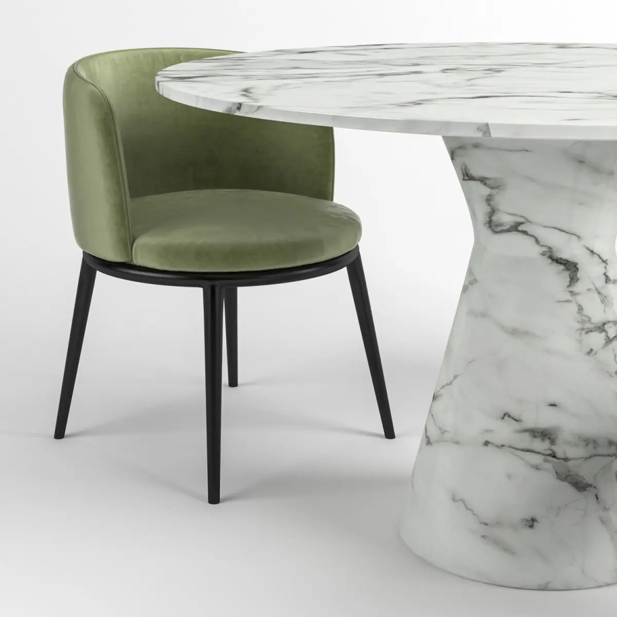 White faux marbleThe remarkable Turner Dining Table is crafted from white faux marble and features characteristic black swirls and veins.