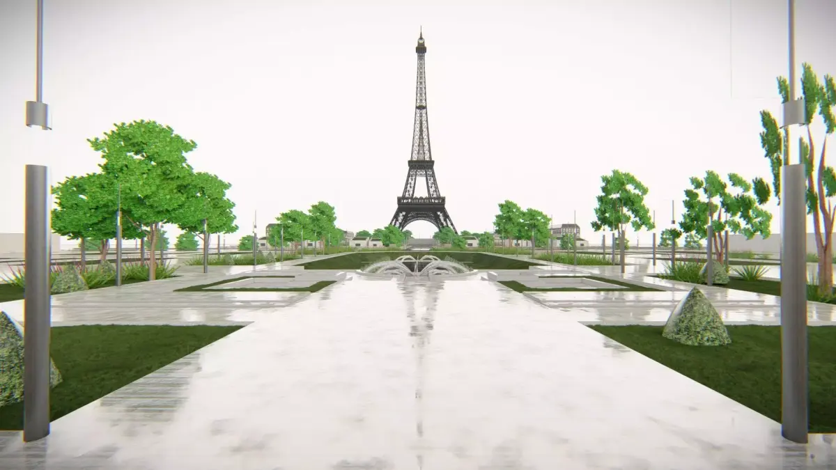 Bring Paris to your 3D scene with this accurate and beautifully detailed Eiffel Tower and Trocadéro Gardens 3D model.This scene captures the iconic view from the Chaillot Palace across the fountains toward the Eiffel Tower — a must-have for architectural visualization, cinematic scenes, and urban design projects.