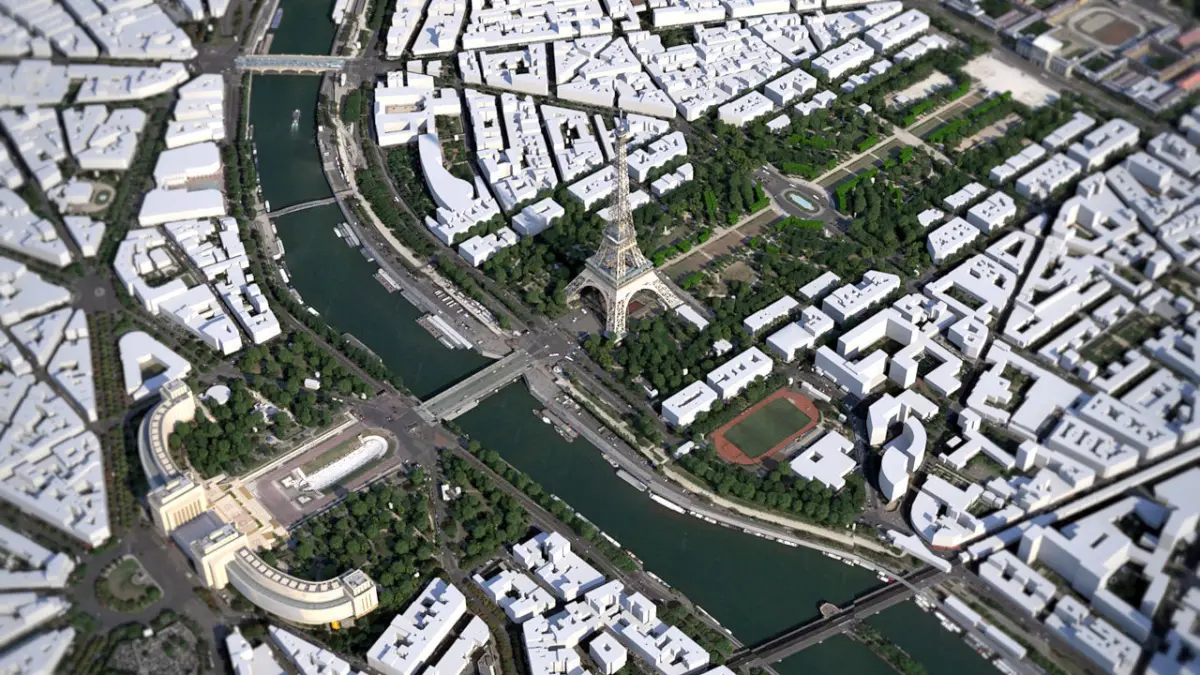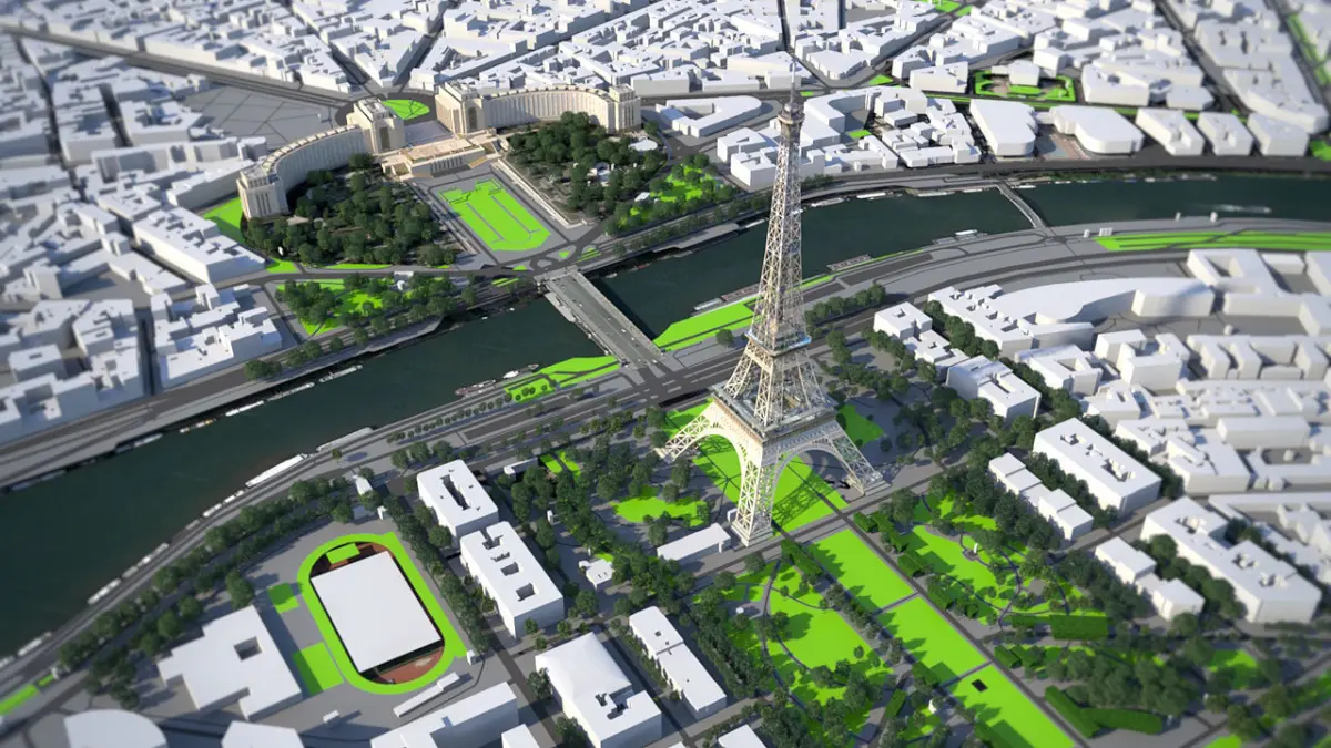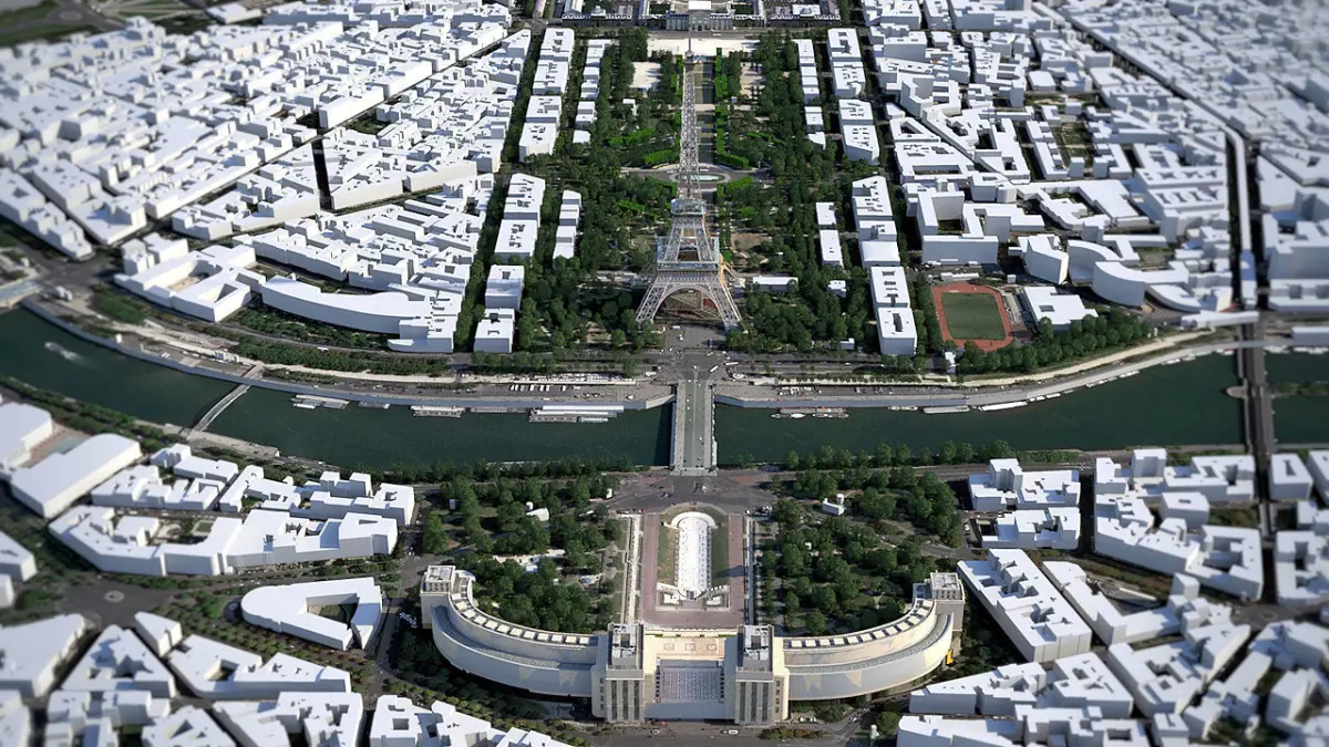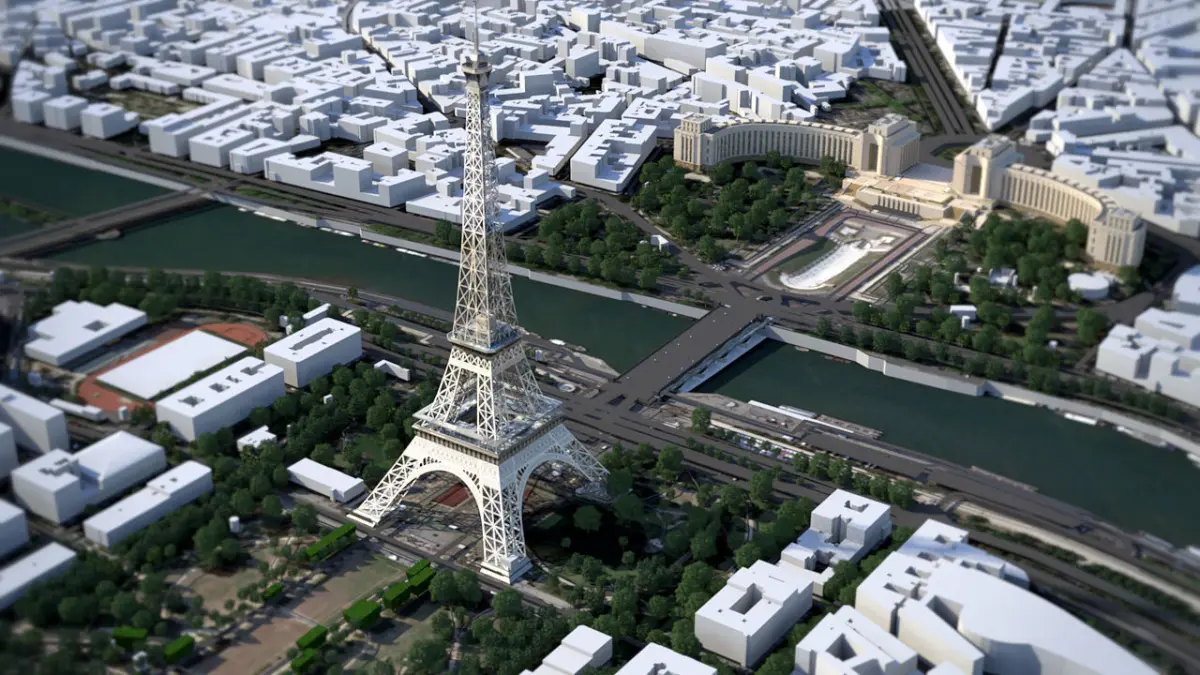 Eiffel Tower Paris city,Road Network, Streets and Buildings 3D model