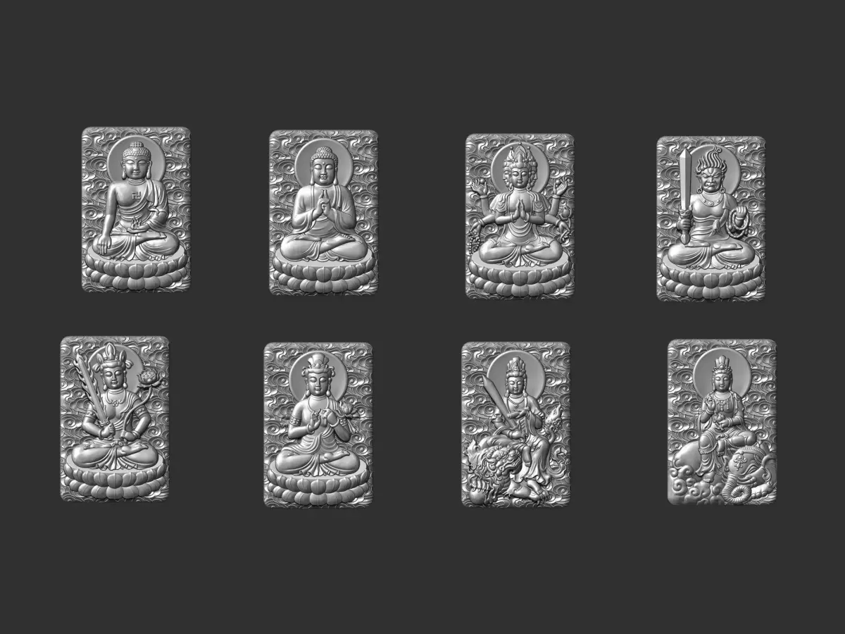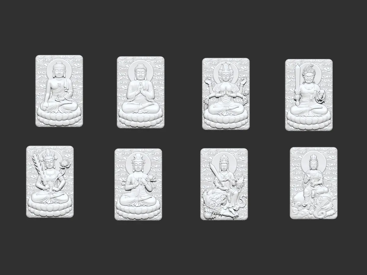 3d model of Eight Buddhas ready for CNC Router Carving or 3d printer.OBJ,STL format.