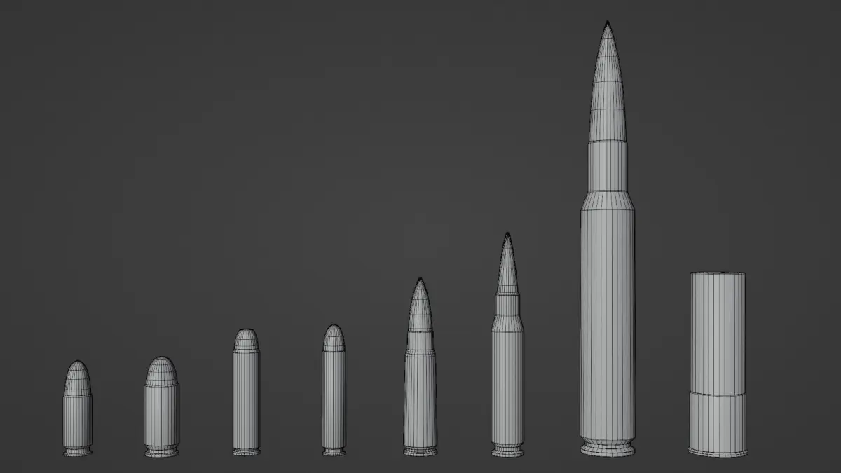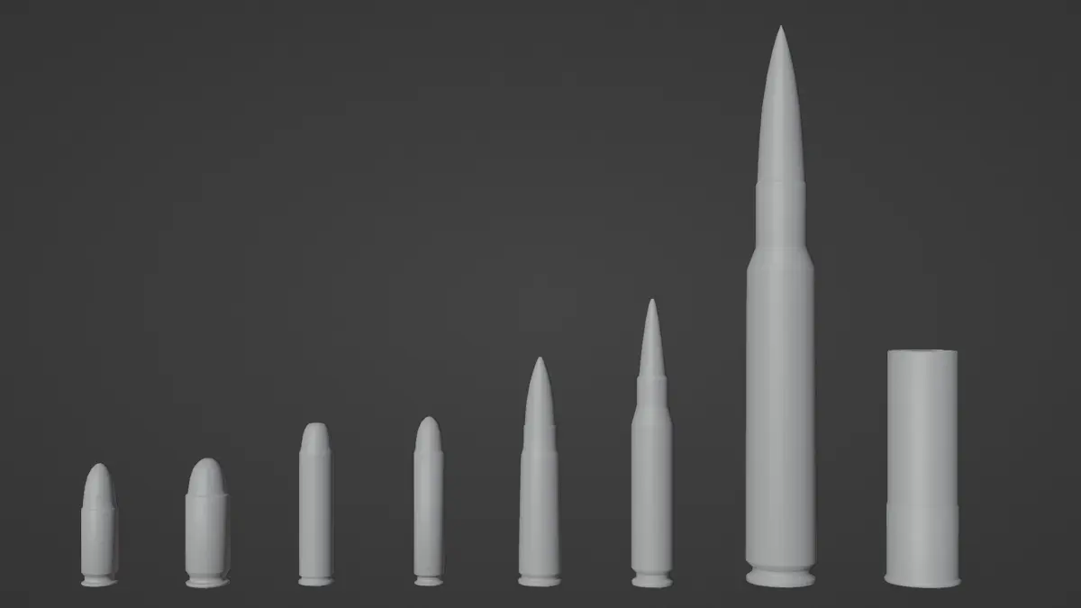 These models were created in a way to make them look like they are real bullets. Preview images were rendered with Blender Eevee and Cycles.