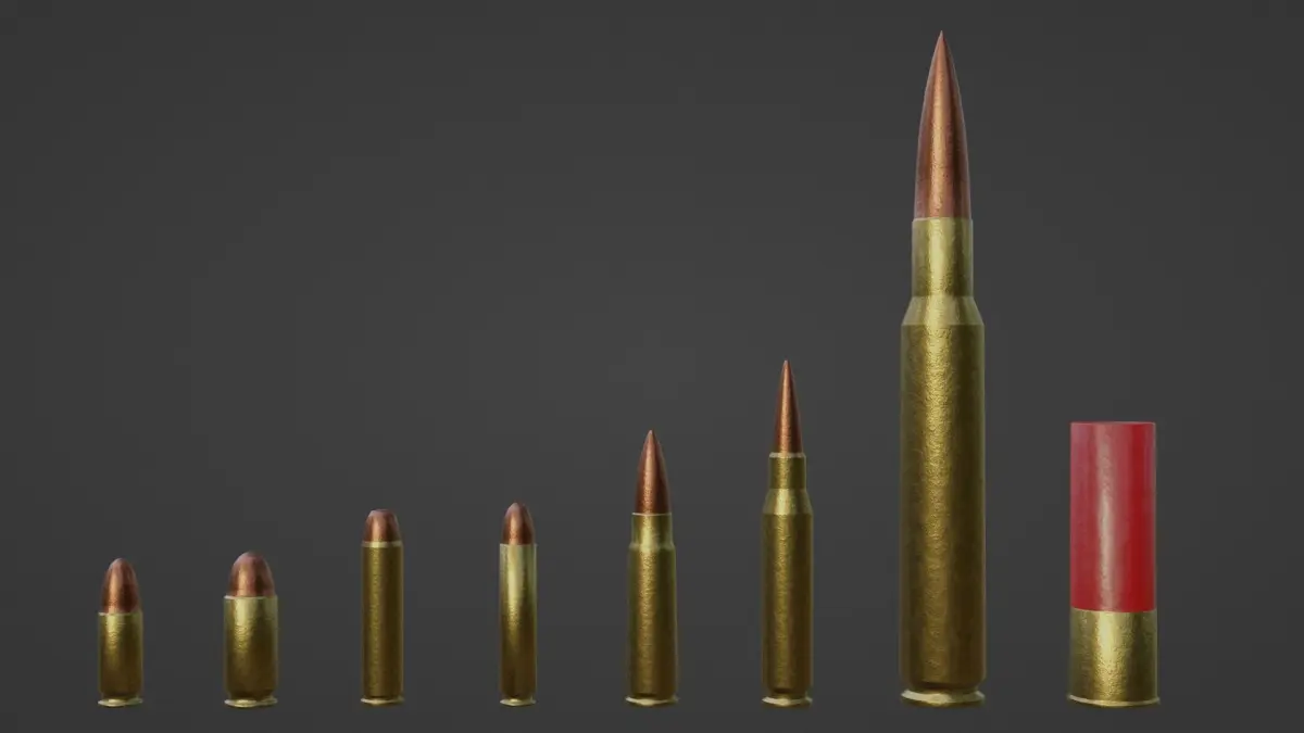 Created eight low poly models of bullets (9mm, .45 ACP, .357 Mag, .30 Carbine, 7.62 x39mm, 7.62 x 51mm, .50 BMG, 12 Gauge) by using Blender. They are great pieces if you have military, guns, ammo project.