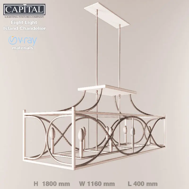 Eight Light Island Chandelier model is ready for rendering 8 light island fixture with nordic grey-brown finishhttp://www.capitallightingfixture.com/product/8-light-island-11/Voltage:120 VNumber of Bulbs:8Bulb Type:E-12Bulb Base:E12 CandelabraMaximum Wattage:60.00 WSizes:Width / Diameter:45.75Height:70.50