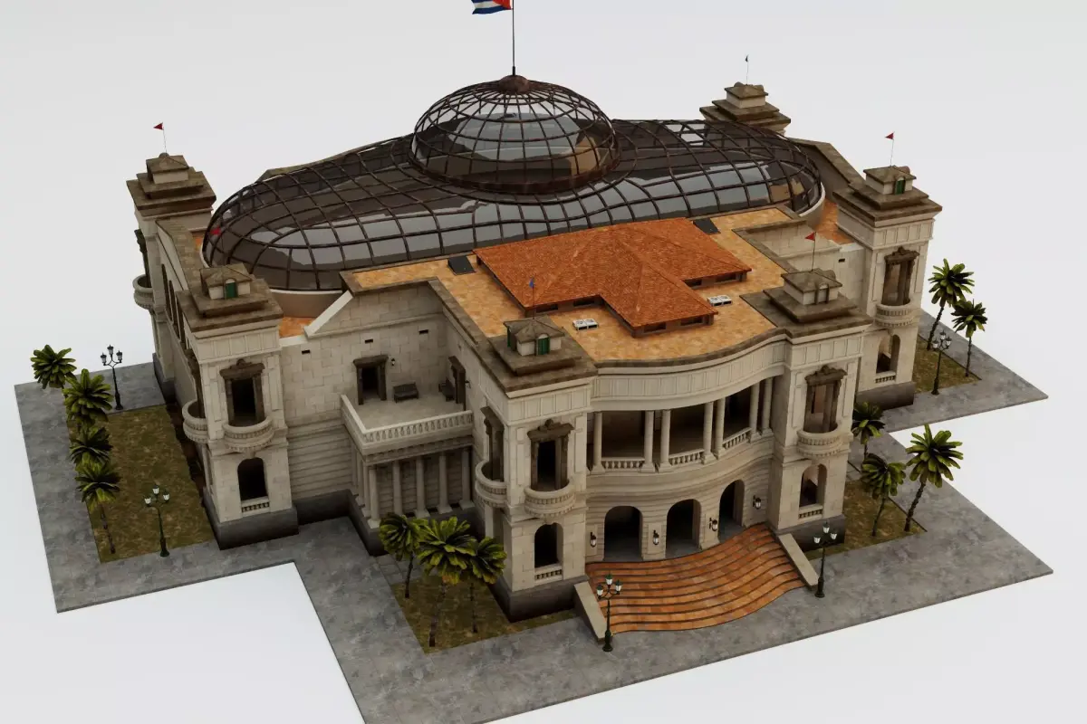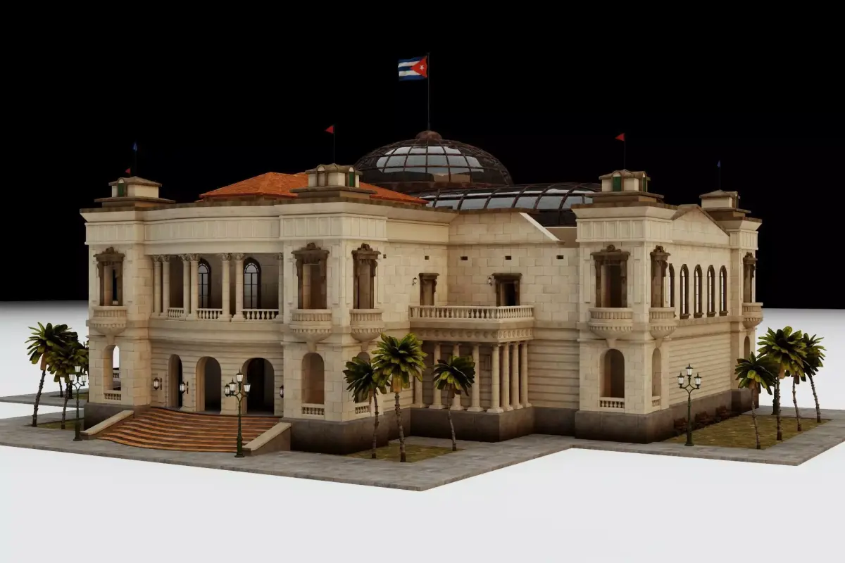 High-quality 3D model of El Capitolio (National Capitol of Cuba), the iconic neoclassical landmark in Havana. Built between 1926-1929, this grand building features a prominent 92-meter dome, symmetrical facades, grand staircase, and ornate details inspired by classical architecture. Topped with the Cuban flag, the model captures the majestic exterior view perfectly for architectural visualization, renders, games, VR, or historical projects.Software: Originally modeled in 3ds MaxRender: Ready for high-quality renders (V-Ray/Arnold/Corona compatible)File Formats Included: OBJ / FBX / 3DSPolygons: High-poly for detailed close-ups and architectural accuracyTextures: Included where applicable (check files)Scale: Real-world scaleSuitable for: Exterior architectural scenes, Havana cityscape, historical recreations, film/VFX, 3D printing prototypesA must-have for anyone collecting iconic world landmarks or Cuban architecture models!