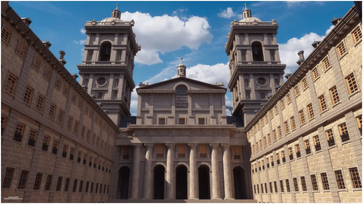 It was devised in the second half of the 16th century by King Felipe II and its architect Juan Bautista de Toledo, although later Juan de Herrera, Juan de Minjares, Giovanni Battista Castello El Bergamasco and Francisco de Mora intervened.