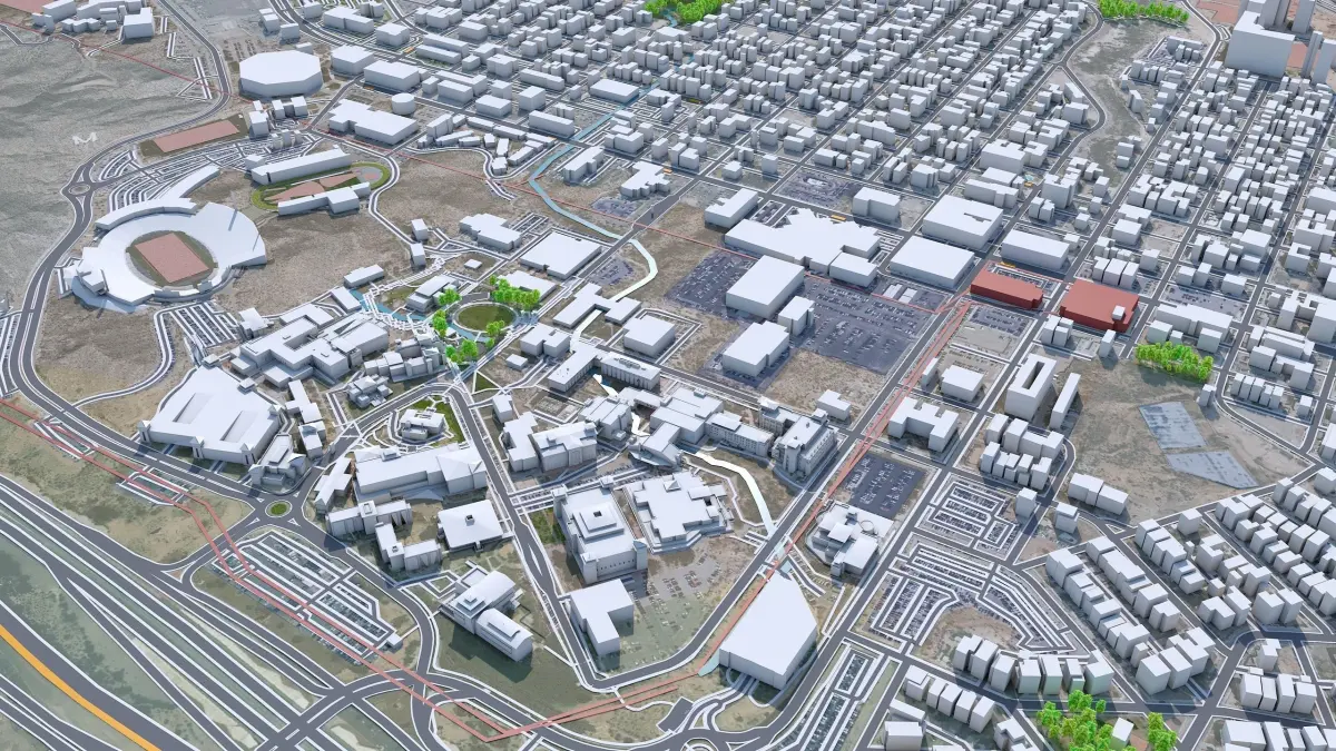 Accurate 3D city model and its surrounding area based on GIS data Year 2022