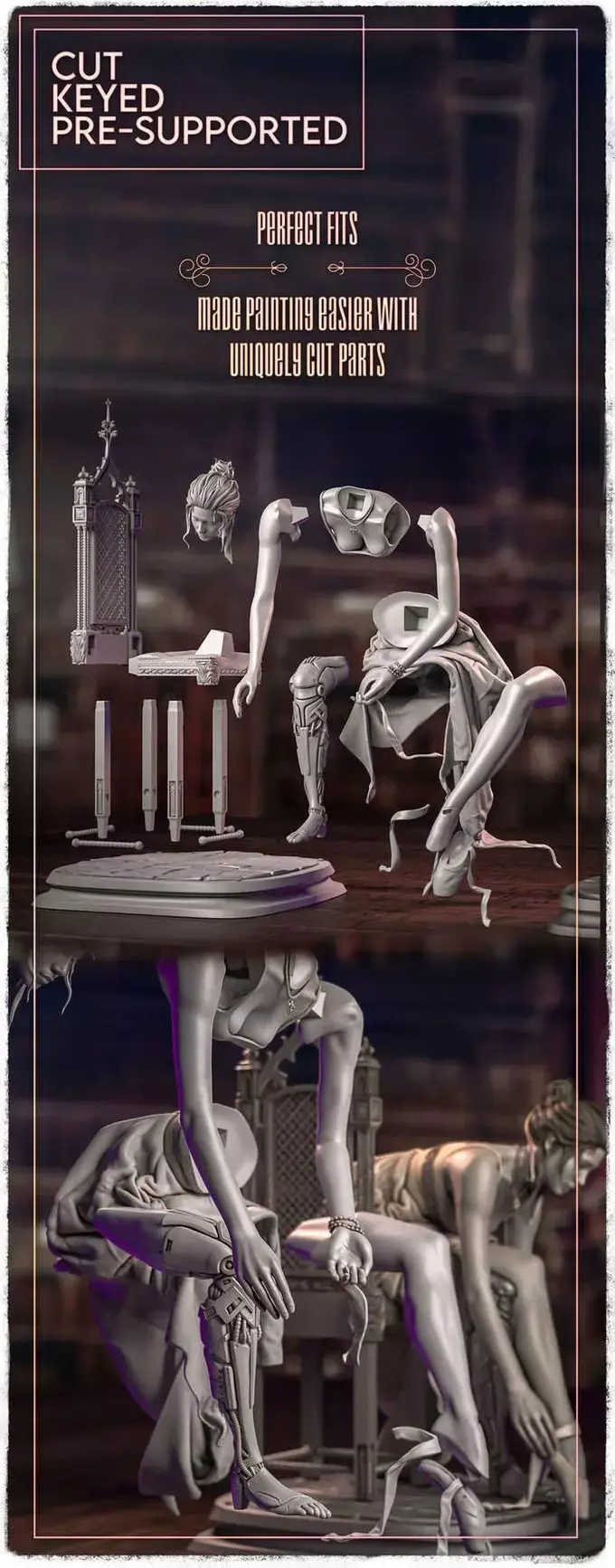 Elara 2061, story of a Cyborg Ballerina. Cut and Keyed, Pre-Supported files also included1/6th scale, ultra refined.Special sculpture by VXLabs