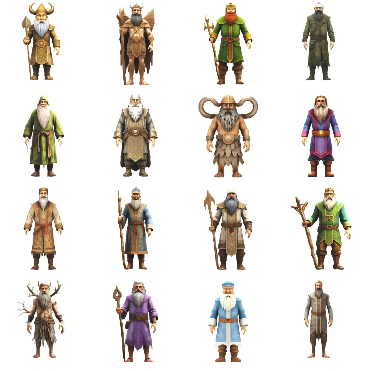 These wise, bearded figures are inspired by mythic guardians, ancient scholars, and mystical leaders. Their outfits range from ornate armor and flowing robes to rugged leather and feathered cloaks, each adorned with intricate patterns, staffs, weapons, and symbolic accessories. Whether you’re a fan of tabletop RPGs, a collector of unique home decor, or a lover of fantasy art, these sages will add magic to your space.