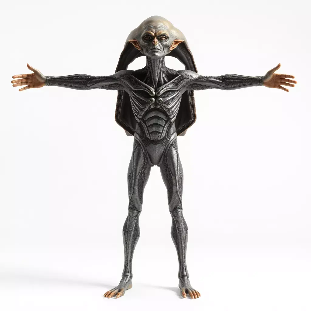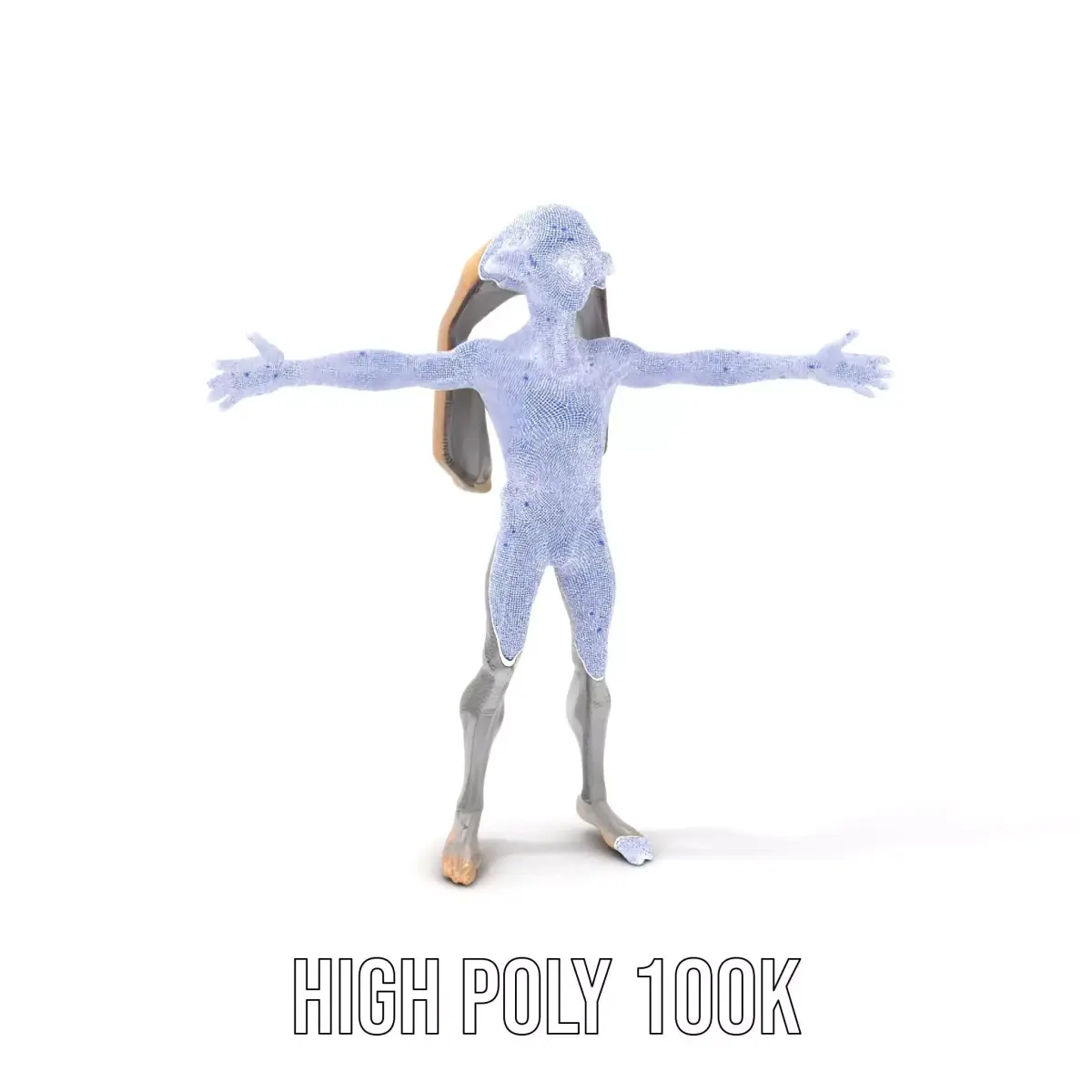The Elder Alien Character model pack introduces an extraterrestrial being with intricate features and a distinguished appearance, suitable for sci-fi projects. Each model has 3 levels of detail: low-poly (1000 triangles for mobile), middle-poly (10,000 triangles for environment), and high-poly (100,000 triangles), which allows for the use of this model in production rendering (such as 3ds Max, Maya, Cinema4D, Blender, Vray/Corona/Cycles and all other), game engines (Unity and Unreal compatible), and interactive presentations, providing a choice of detail based on the LOD System principle. This character is perfect for animations, video games, and visual effects to add a unique and sophisticated alien presence. The model's textures are PBR, Diffuse, NormalMap, and reflection/roughness/metallic, which are suitable for any modern rendering engine. All models accurately unwrapped and have no overlapping UVs. All textures are 4096*4096 in size. If you like this model, please leave a like and comment!