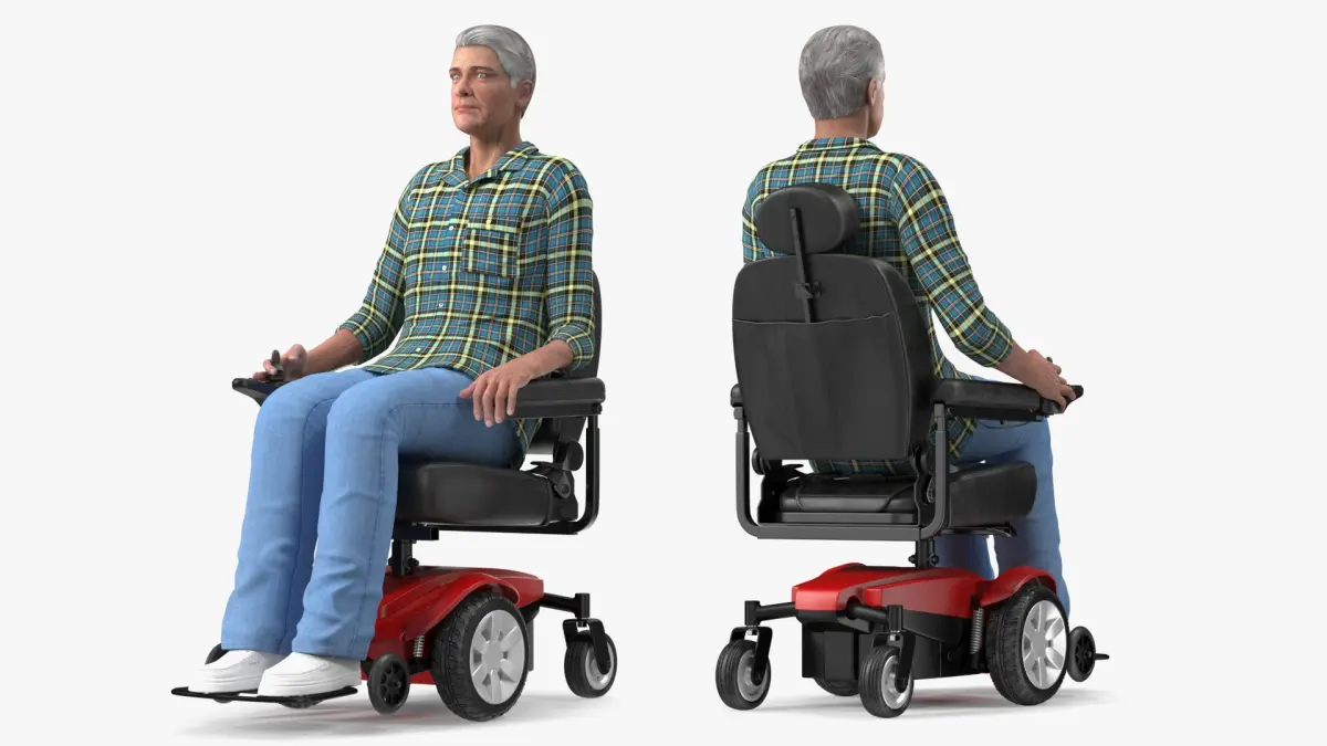 Elderly Man with Jazzy Select Wheelchair is a three-dimensional model of an old-aged, elderly man on motorized wheelchair, which is moving medical equipment for people with physical disabilities category.