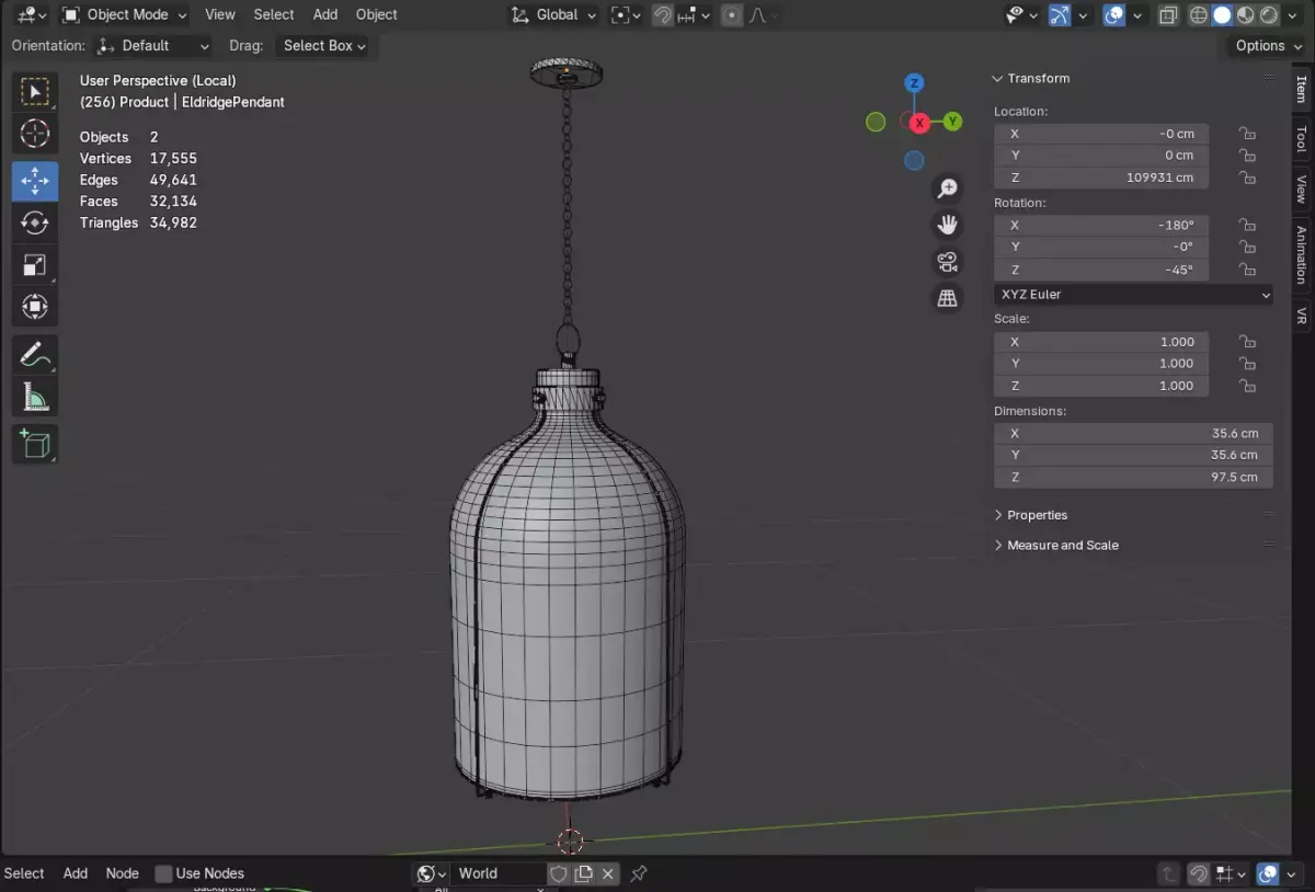 A 3D model of the Eldridge Pendant (most notably by Hudson Valley Lighting) is a refined Industrial-Minimalist fixture that adds architectural structure to a scene without cluttering the visual field. In Blender, its mix of thin metal wireframes and volumetric glass makes it an excellent study in transparency and shadow.