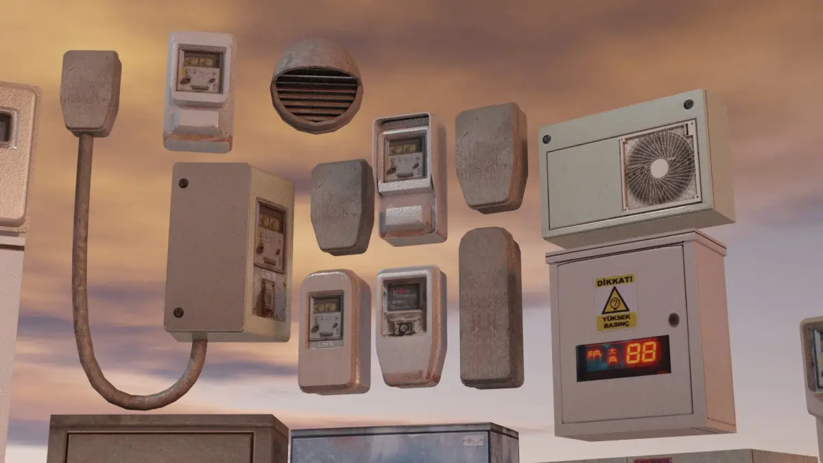 This is a detailed 3D asset pack featuring a variety of electrical boxes, utility panels, and conduits suitable for use in urban, industrial, or cyberpunk environments. Each model is meticulously crafted with realistic textures and details, making it perfect for architectural visualization, game development, or animation projects.
