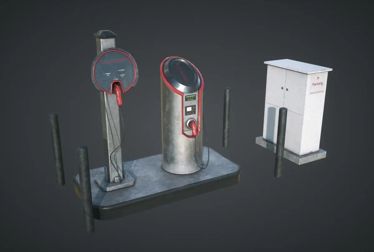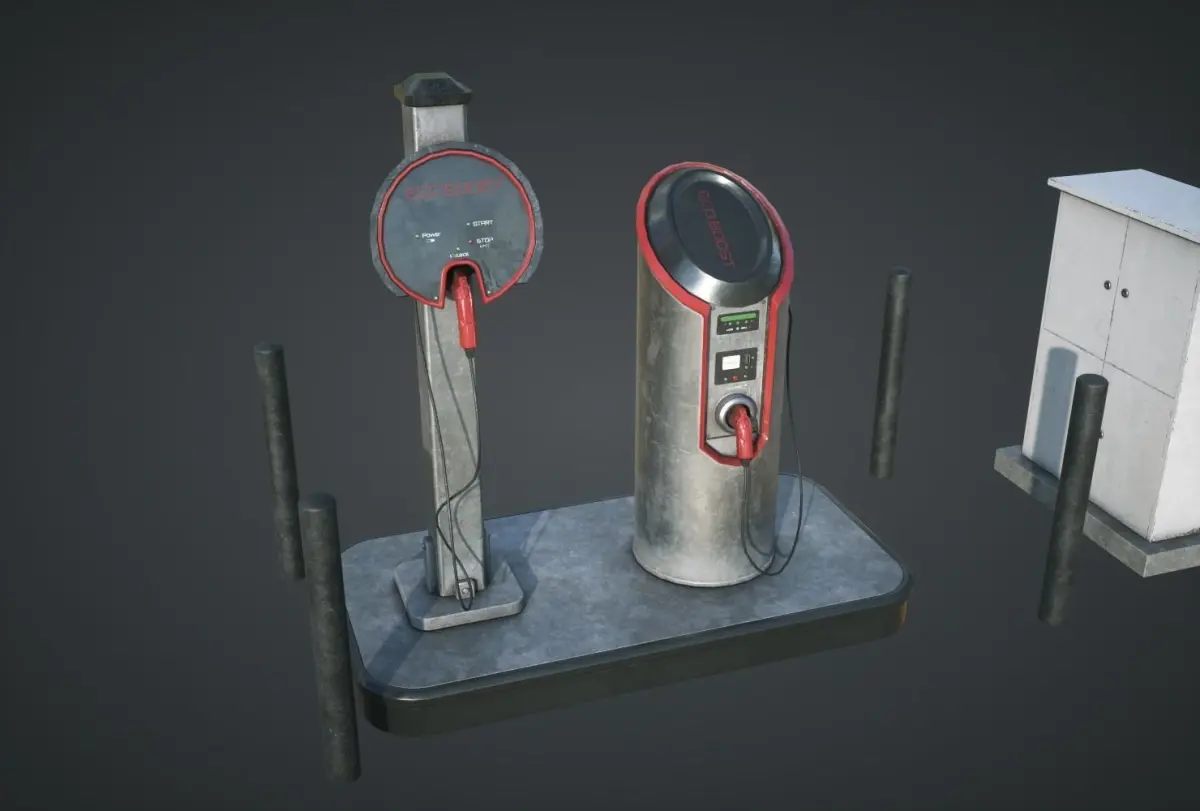 Electric Car Charging Station Ready for Games. Royalty Free 3D Model, You can use this for Games ;)Design by Adrian Kulawik.