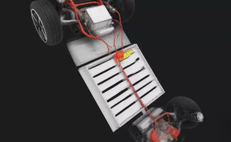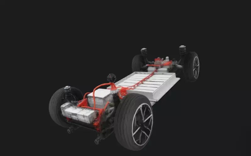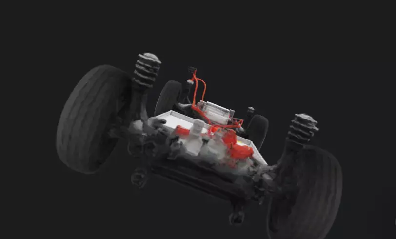High-quality electric car chassis 3D model designed for automotive visualization, simulations, and game development.