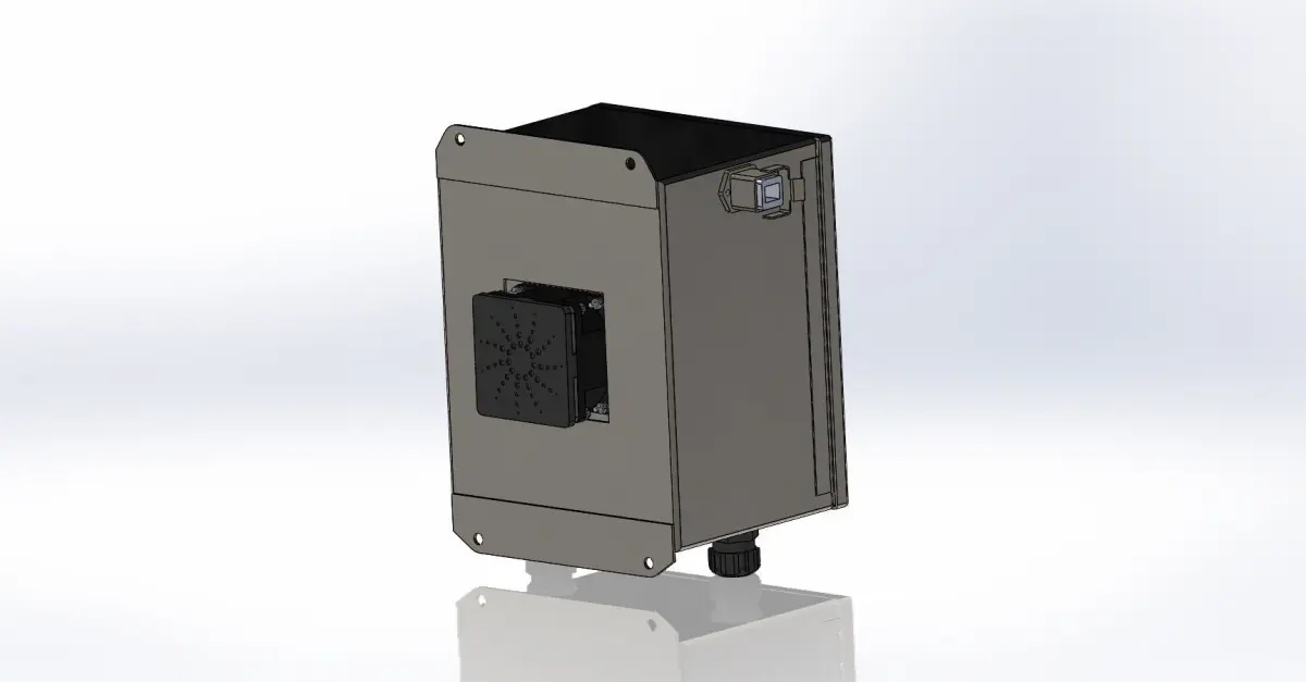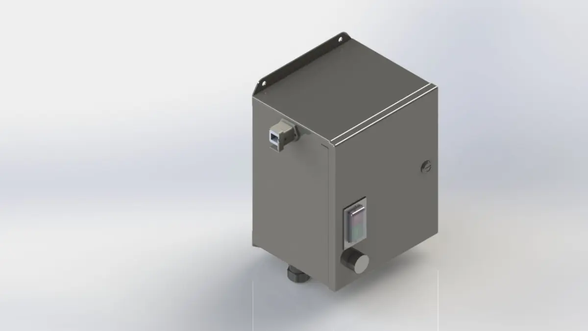 Electric Control box (10" x 8" x 6")Fan at back2 Wire connectors at bottomSide 4 pin connectorPower button (on/off)Key lock