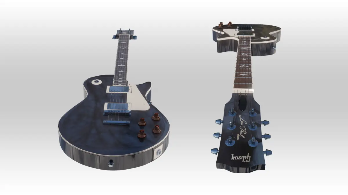About Model: Gibson les paul Electric Guitar 3d Model. this object Modelled in 3Ds Max, texturing and texture paint are done in substance painter. all parts of this guitar is modeled exactly on gibson parts: Bridges, Pickup, volumes, Sound Jack, Tuning and .. etc.
