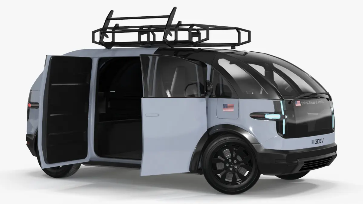 Electric Minivan Canoo Van Delivery Light Blue Rigged for Maya is a three-dimensional model of Delivery trim of Canoo Lifestyle Vehicle which is an electric type van, minivan or minibus, and which is designed to transport of loads, goods, cargo, freight.Modern van type electric vehicle (EV) which is designed for cargo transportation. The Delivery trim of the Canoo Lifestyle Vehicle, an electric van, minivan, or minibus, which offers a versatile and eco-friendly solution for transporting goods. With a focus on efficiency, it boasts a spacious interior and ergonomic design. This trim optimizes cargo space while providing comfortable seating, making it ideal for delivery services. Its electric powertrain ensures zero emissions and low operating costs, contributing to a sustainable future for urban mobility.