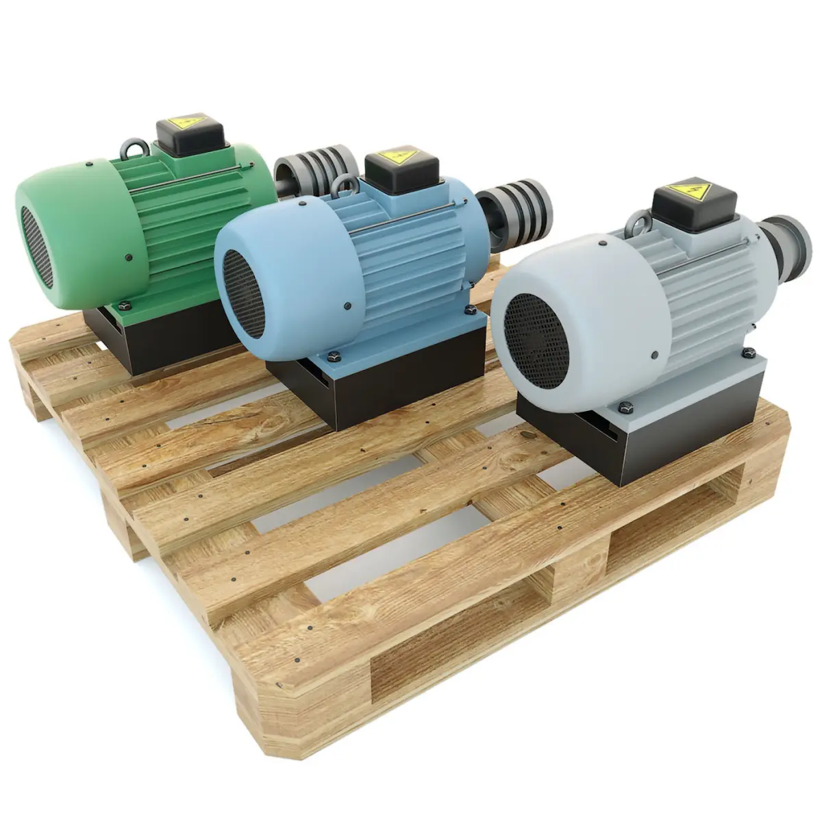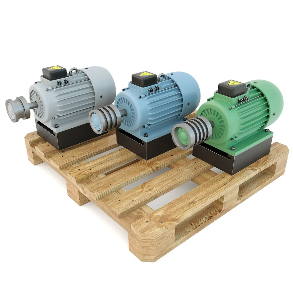 The 3d model of the electric motor, located on a wooden pallet, can be implemented in the industrial scene in the presented collection, but also separately, for example, installed on a machine. Each electric motor has its own nozzle with slots for the belt. On the electric motor and the pallet there is a UV, materials and textures are applied. The wooden pallet can be used separately from the electric motor and is equipped with a 3K (3000 X 3000) resolution texture.
