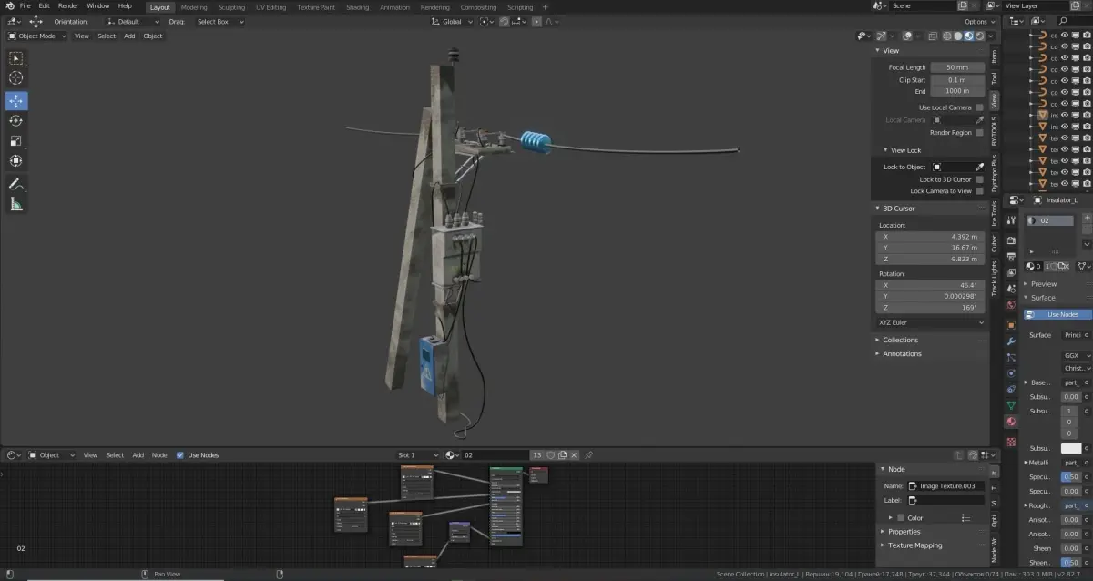 Simple electric pillar. The model has 37344 triangles or 17748 faces. The model consists of 2 uv maps and two textures have a resolution of 2048 pixels
