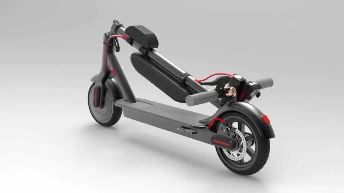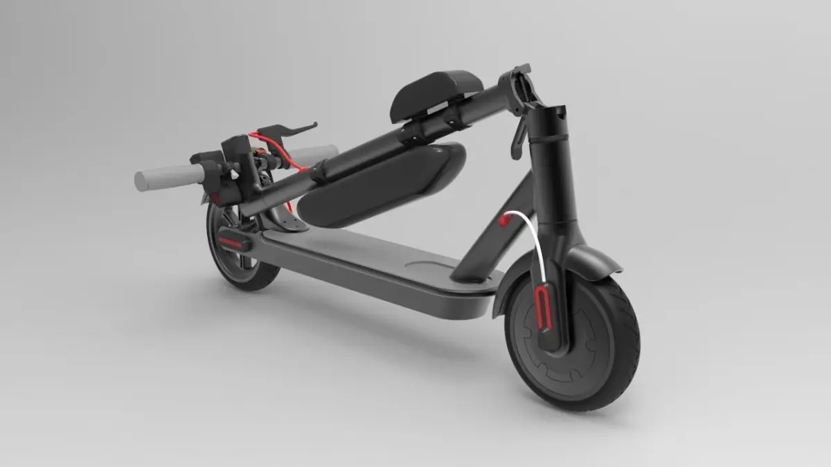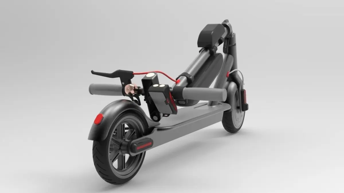 3d model of the Xiaomi Mijia scooter with additional accessories such as a phone holder and bell. 3d modeling uses Solidworks 2018 software and the rendering process uses Keyshot software.