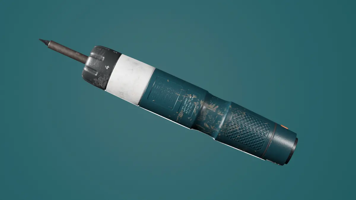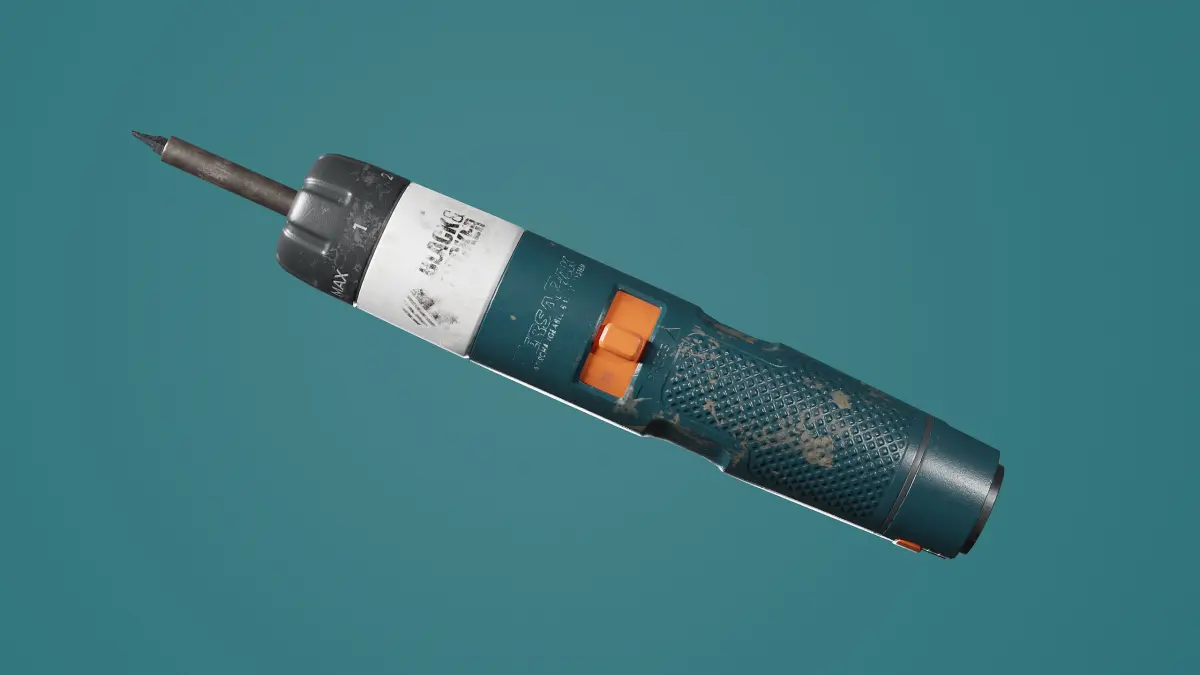 This is an old rechargeable battery-powered electric screwdriver. It's a bit dirty and worn, but it works. The game-ready asset contains a detailed model with PBR textures, rigging and animations.