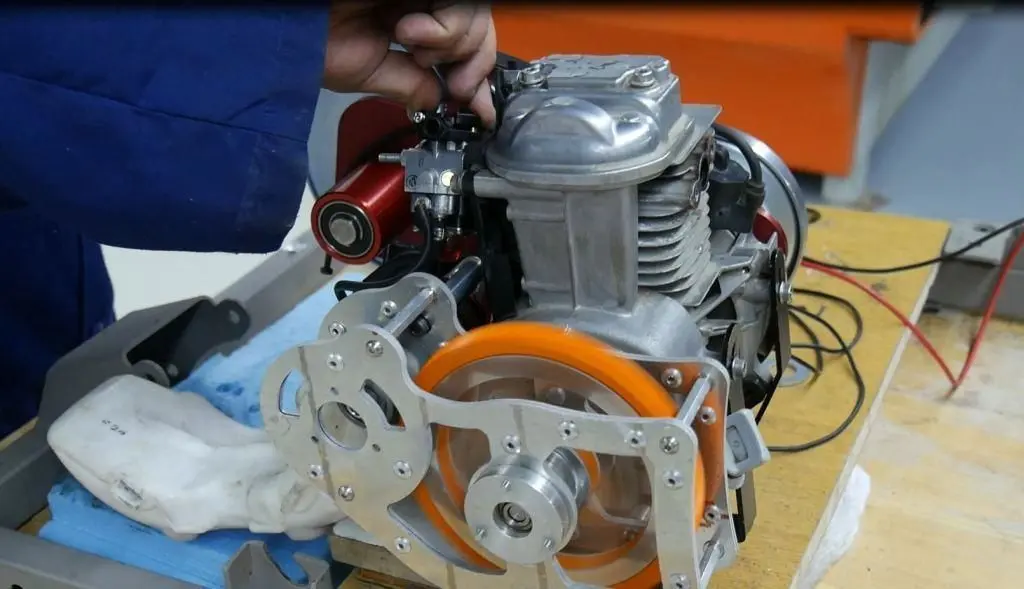 This is Honda engine GX 35cc which we used in all our tournament of Shell eco car Marathon, this year I tried to integrate something new in our design which is adding CVT mechanism and modifying the type of the starter motor by brushless motor.CVT (Continuously Variable Transmission) also known as a shiftless transmission, CVTs are commonly used in small motorized vehicles.I started by designing the whole design in SolidWorks, I used 3D scanner to construct digital 3D model of the engine.I used ABS plastic to print the orange gear only to test the mechanism if it’s operating well, and meanwhile testing the gearing ratio.For the shaft of the brushless electric motor was manufactured in CNC lathe, and milling machine 4 Axis to realize flat surfaces in both side of the shaft. Most other flat parts sheet metal aluminum and stainless steel I used CNC Water jet cutting machine.