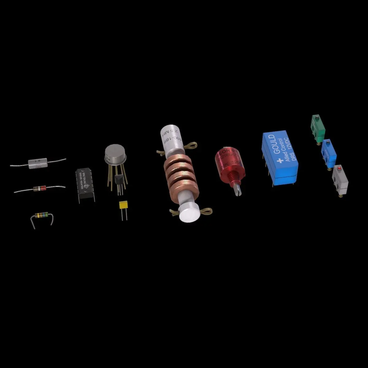 Electrical Components 3D models. These models come with two sets of electrical components and 2 texture sets. Modeled in Maya and textured with Substance Painter and Photoshop. The models are built to scale and are UV unwrapped with 2k textures. Includes 3D model and textures!