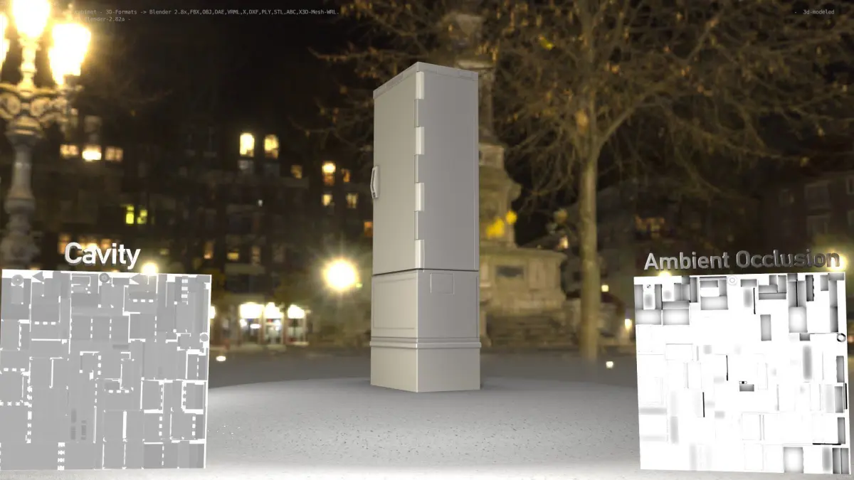 BLEND (Blender, filesize: 2.37 MB), OBJ (OBJ, filesize: 65.2 KB), FBX (Autodesk FBX, filesize: 59.5 MB), GLTF (glTF, filesize: 63.6 MB), ABC (Alembic, filesize: 64.4 KB), DAE (Collada, filesize: 106 KB), STL (Stereolithography, filesize: 39.7 KB), DXF (DXF, filesize: 266 KB)